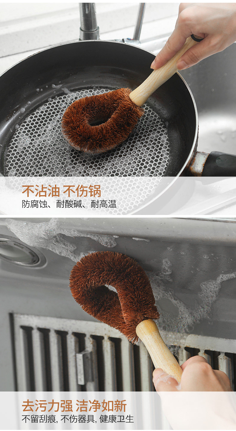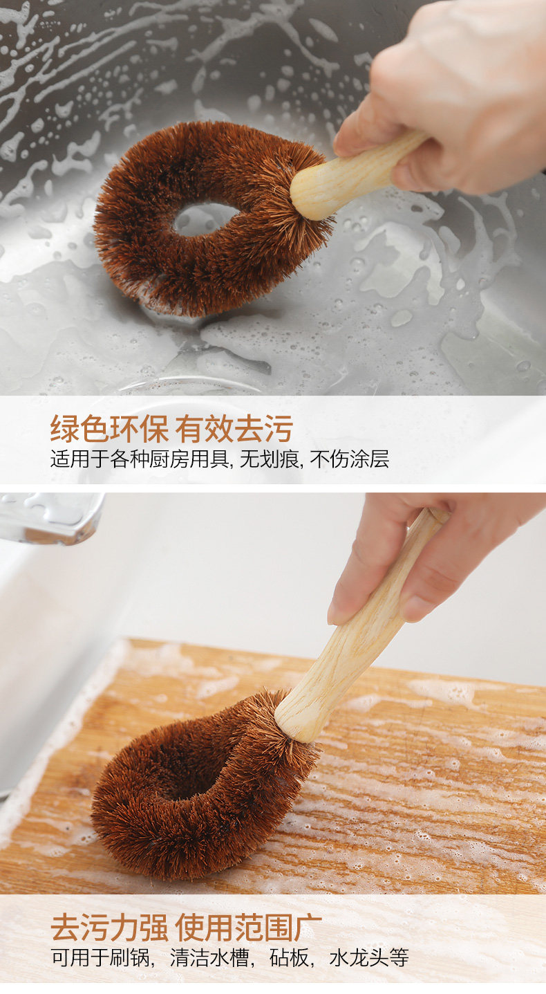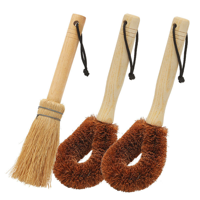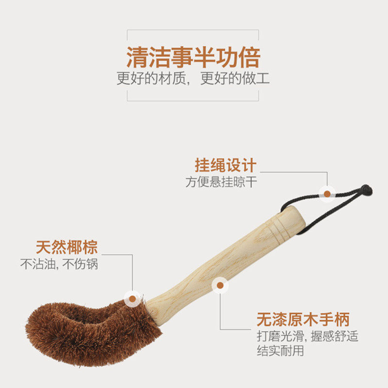 品亨 4 Кастрюль Комбинация натуральная кокосовая пальма щетка бамбука из дерева с длинной кухонной кухней.