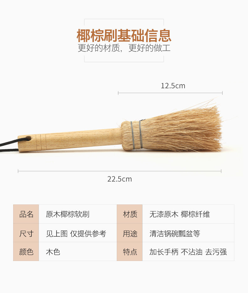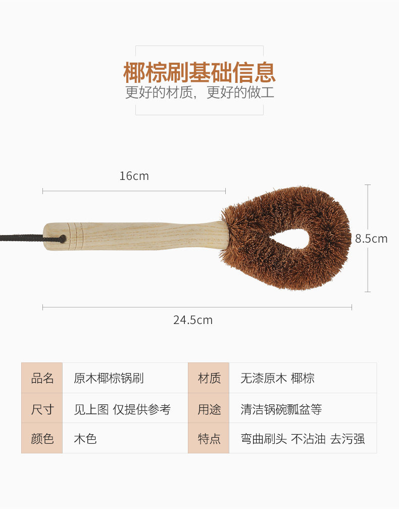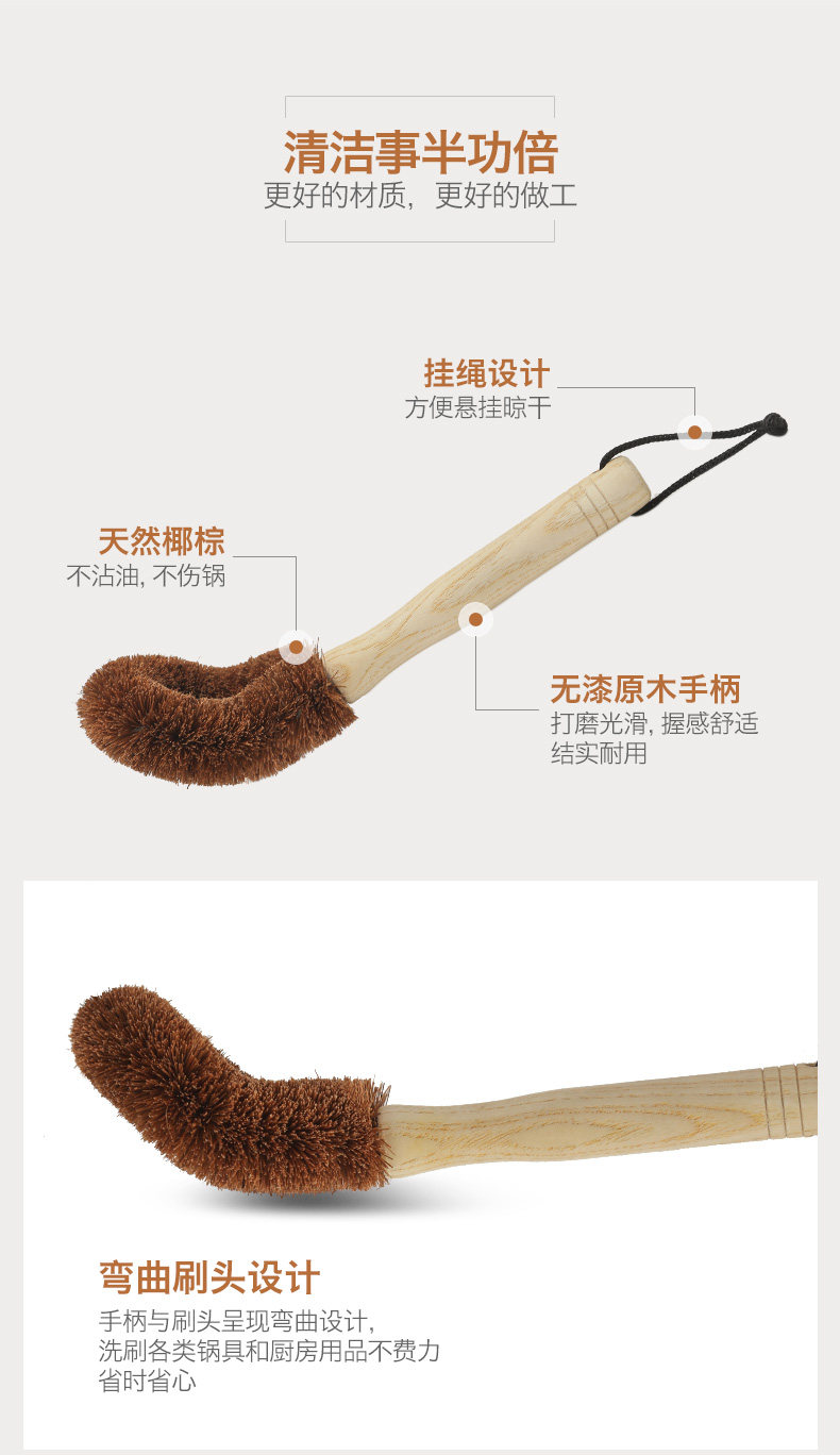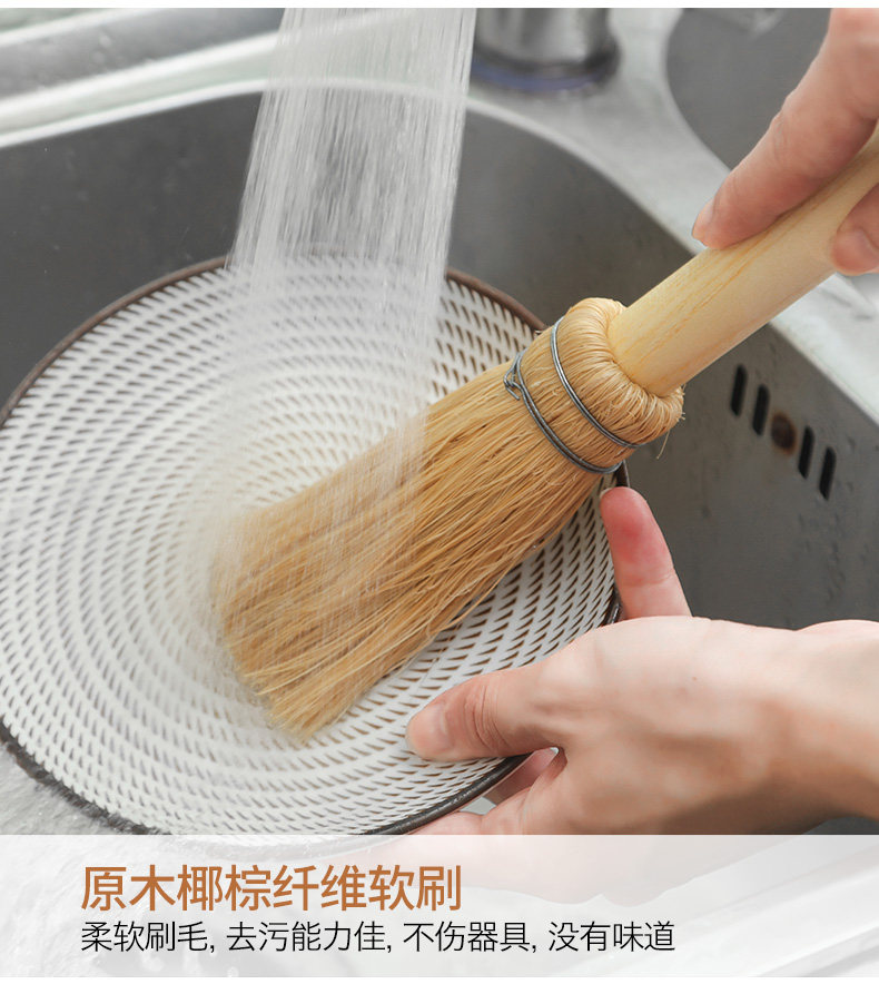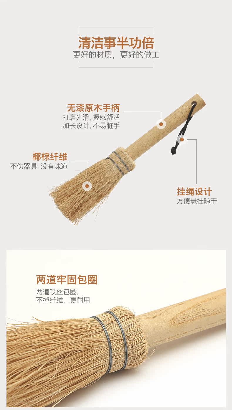 品亨 4 Кастрюль Комбинация натуральная кокосовая пальма щетка бамбука из дерева с длинной кухонной кухней.