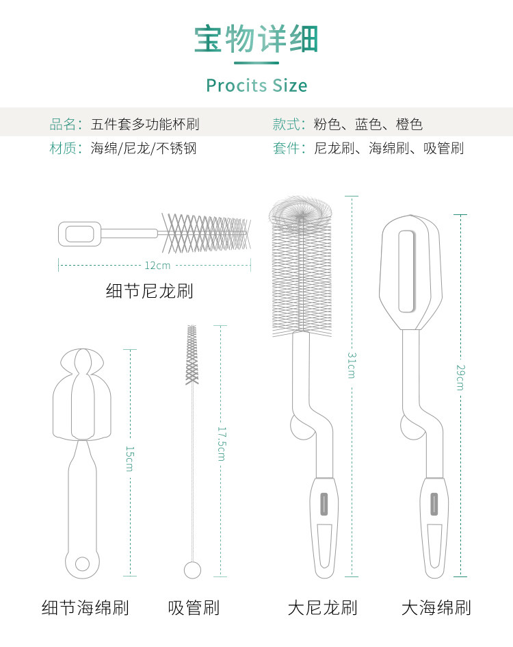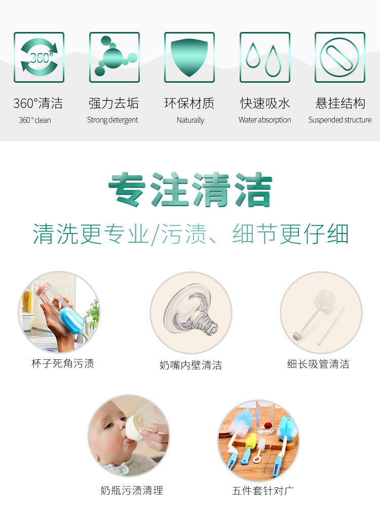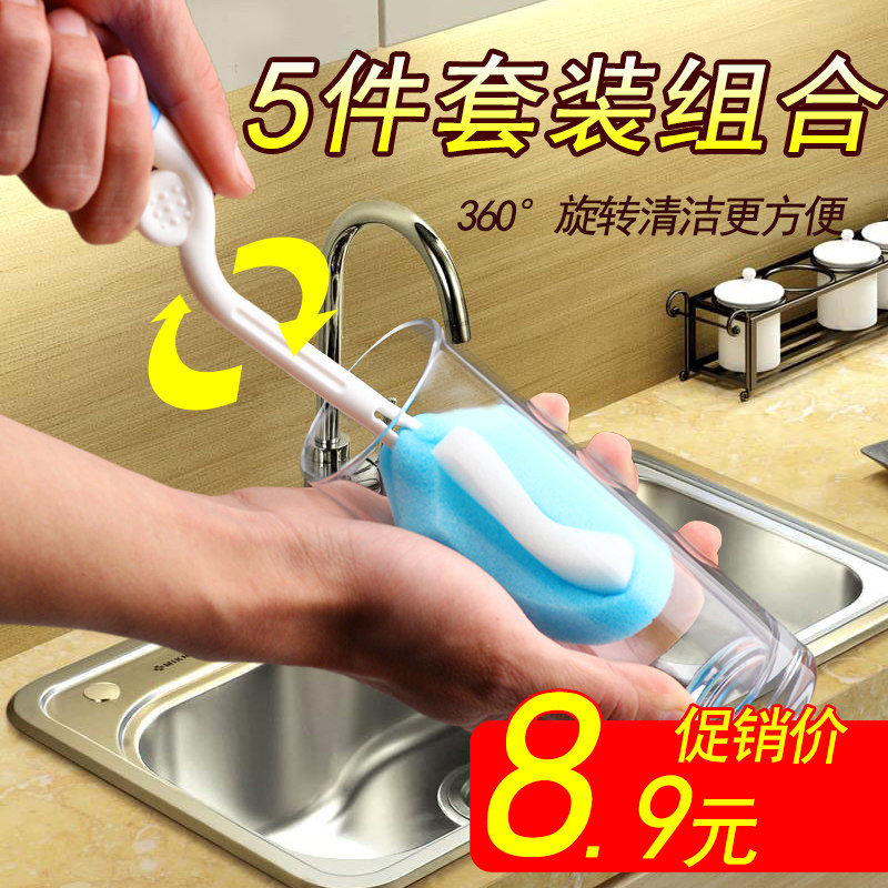 Комплект, ершик для бутылочки, поролоновое моющее средство для бутылочек, гигиеническая стеклянная щетка, 5 шт