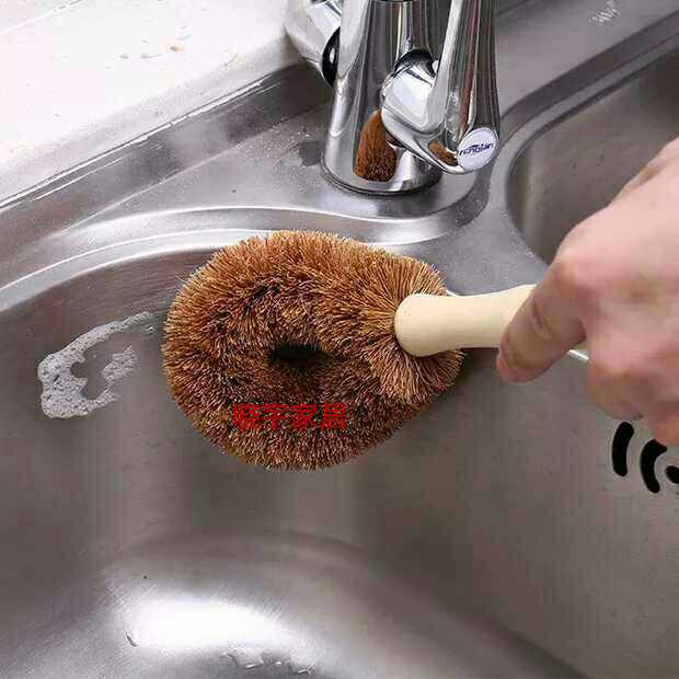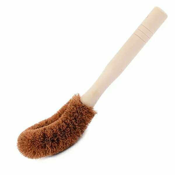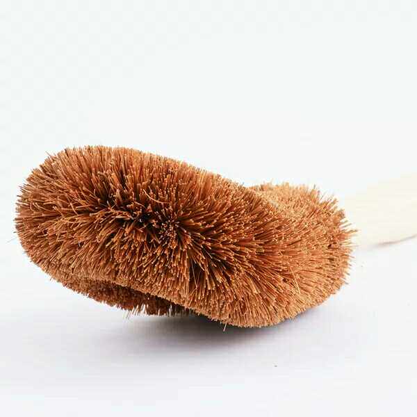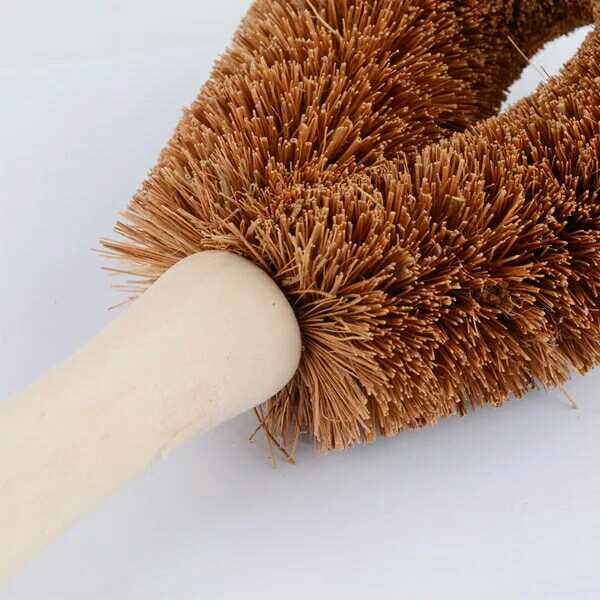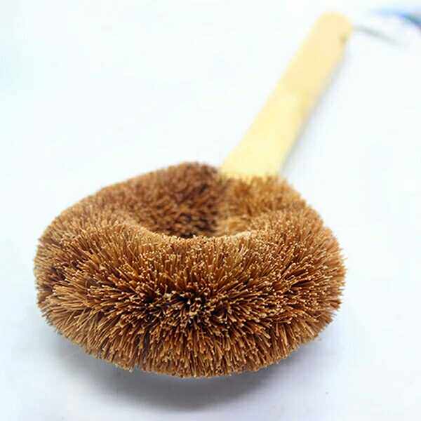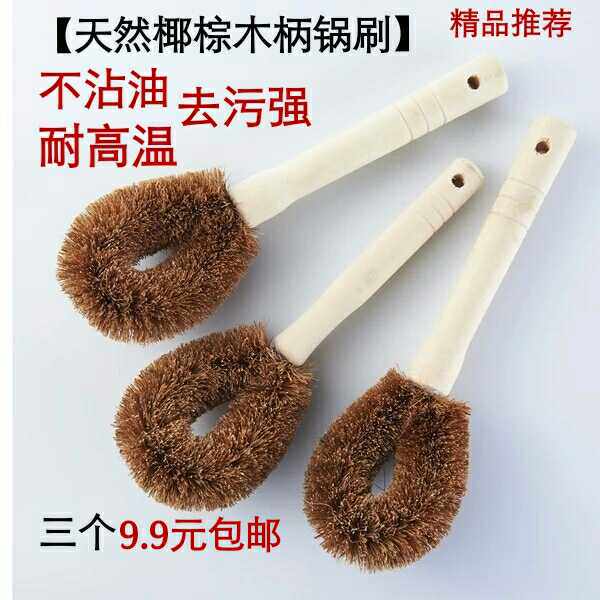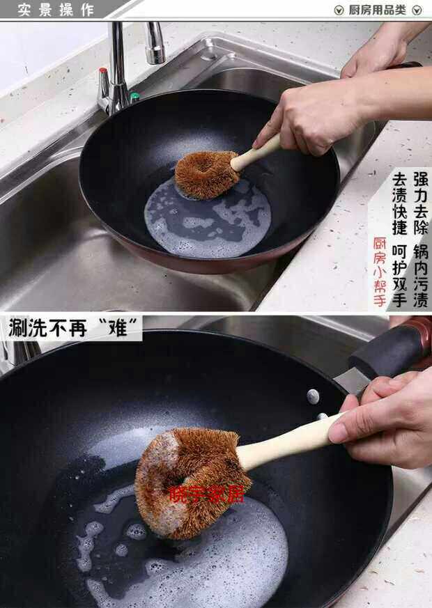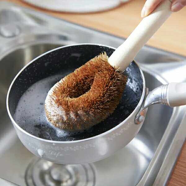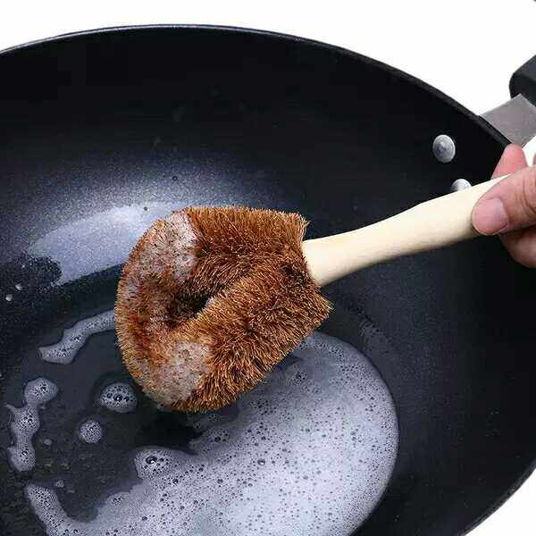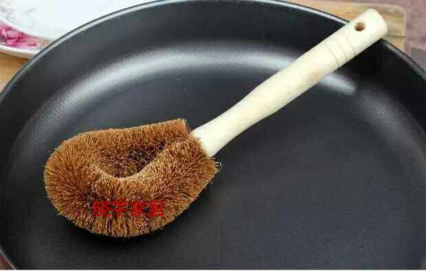 Натуральная ручка кисти для кокосового горшка, не прилипая к масле, вымойте горшок, щеткой горшок с артефактом с длинной ручкой, щеткой, щеткой, не повреждайте кухонную щетку для горшка