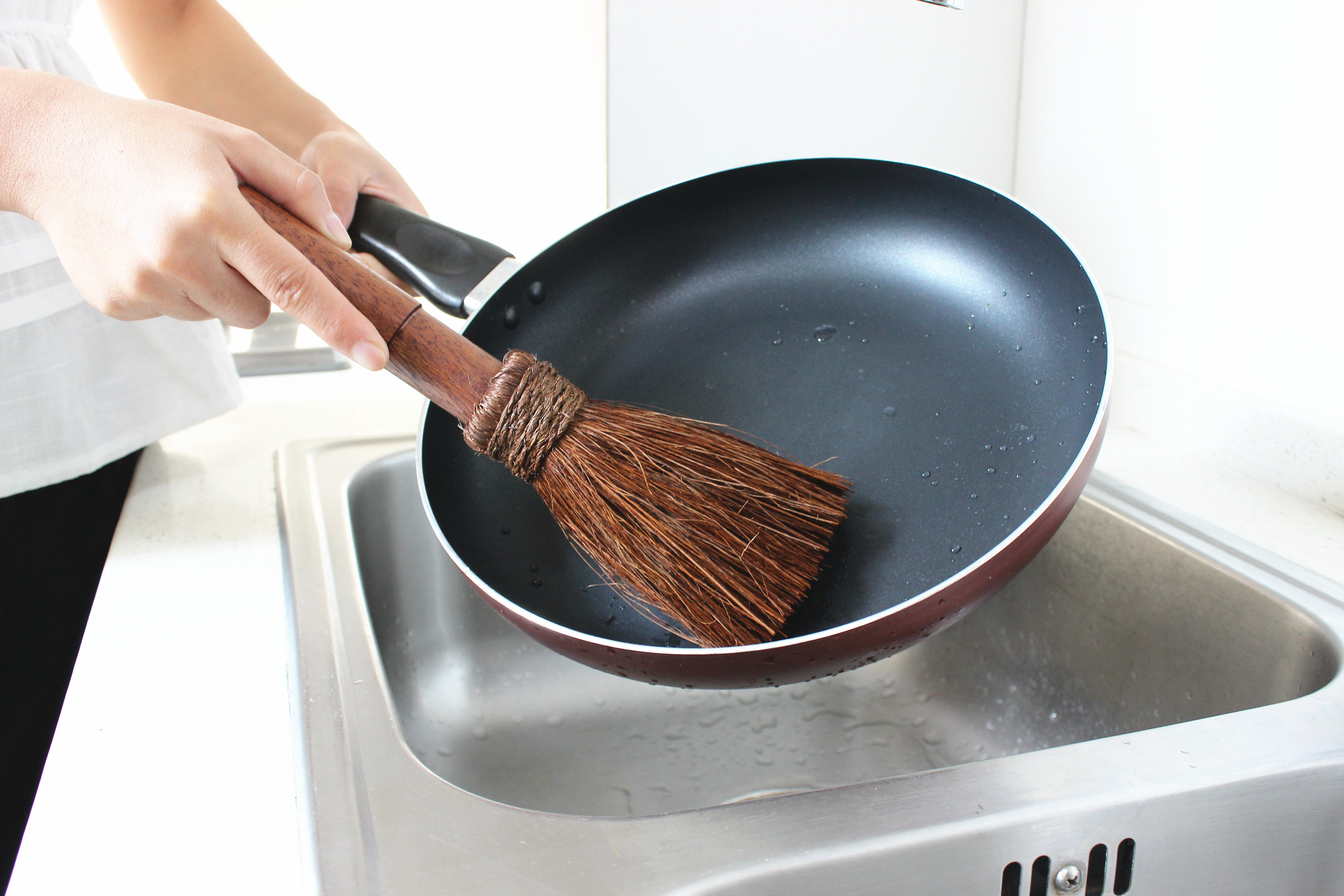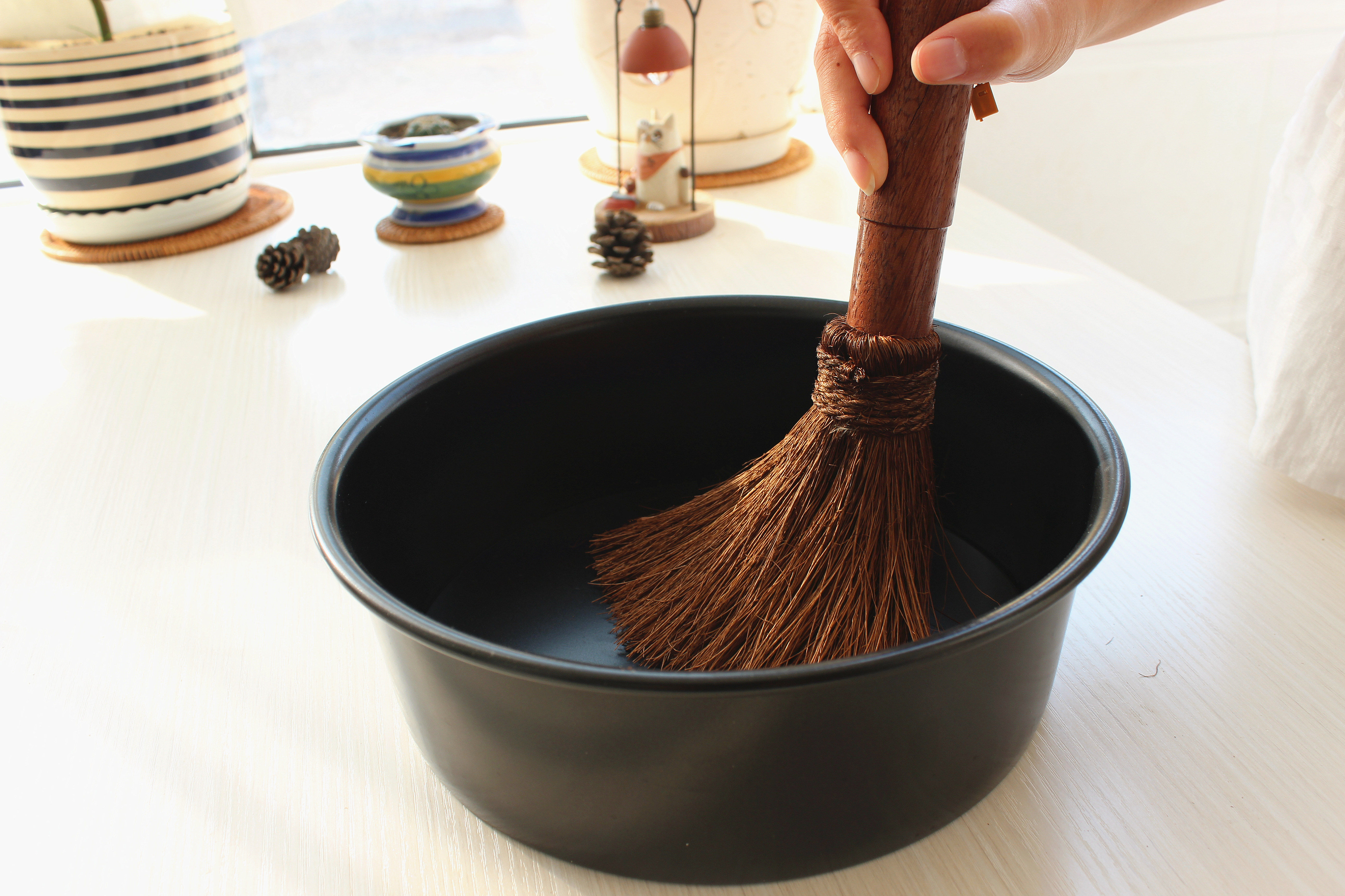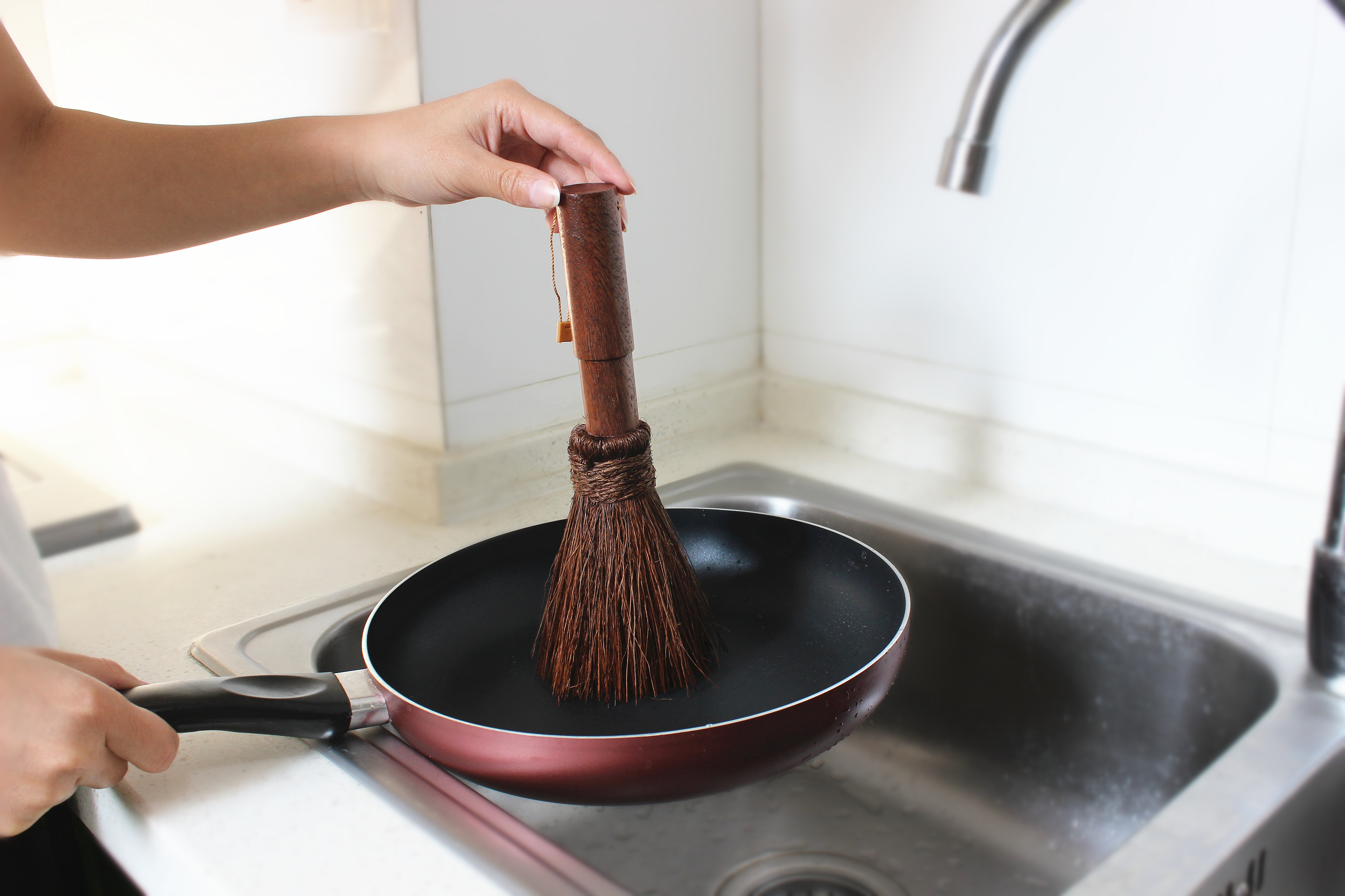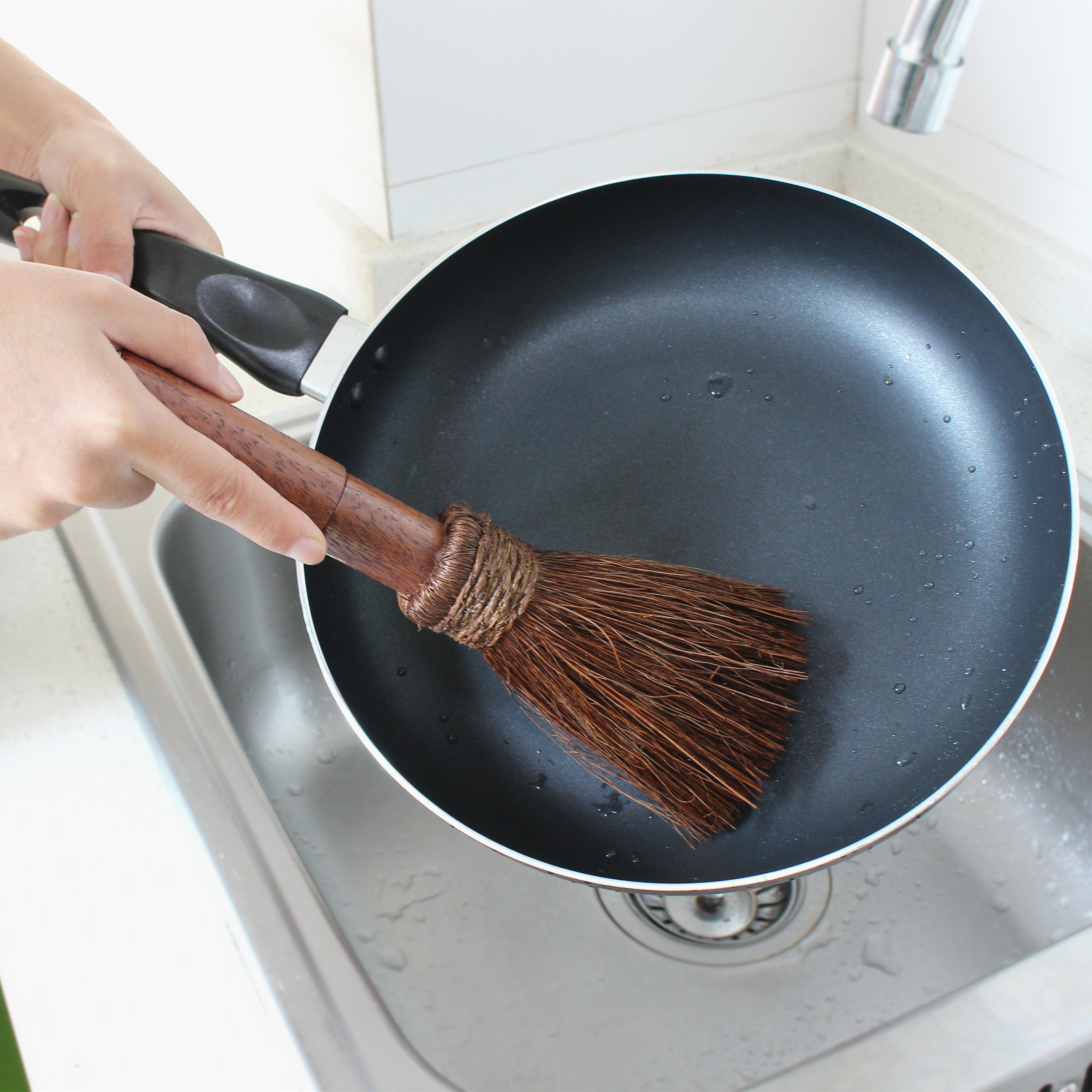 Деревянная ручка коричневая щетка горшок артефакт кокосовый ладонь кухонная раковина раковина