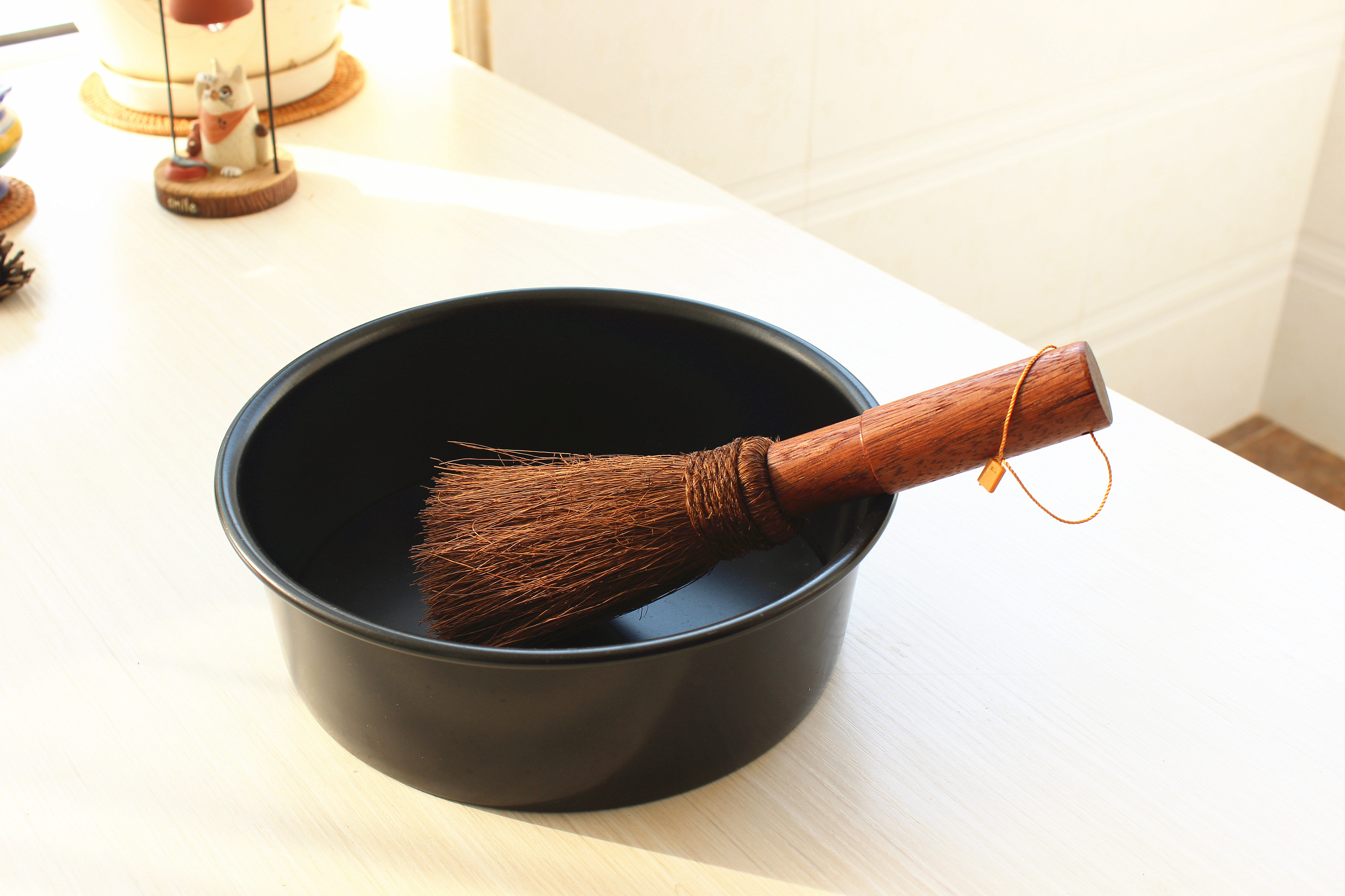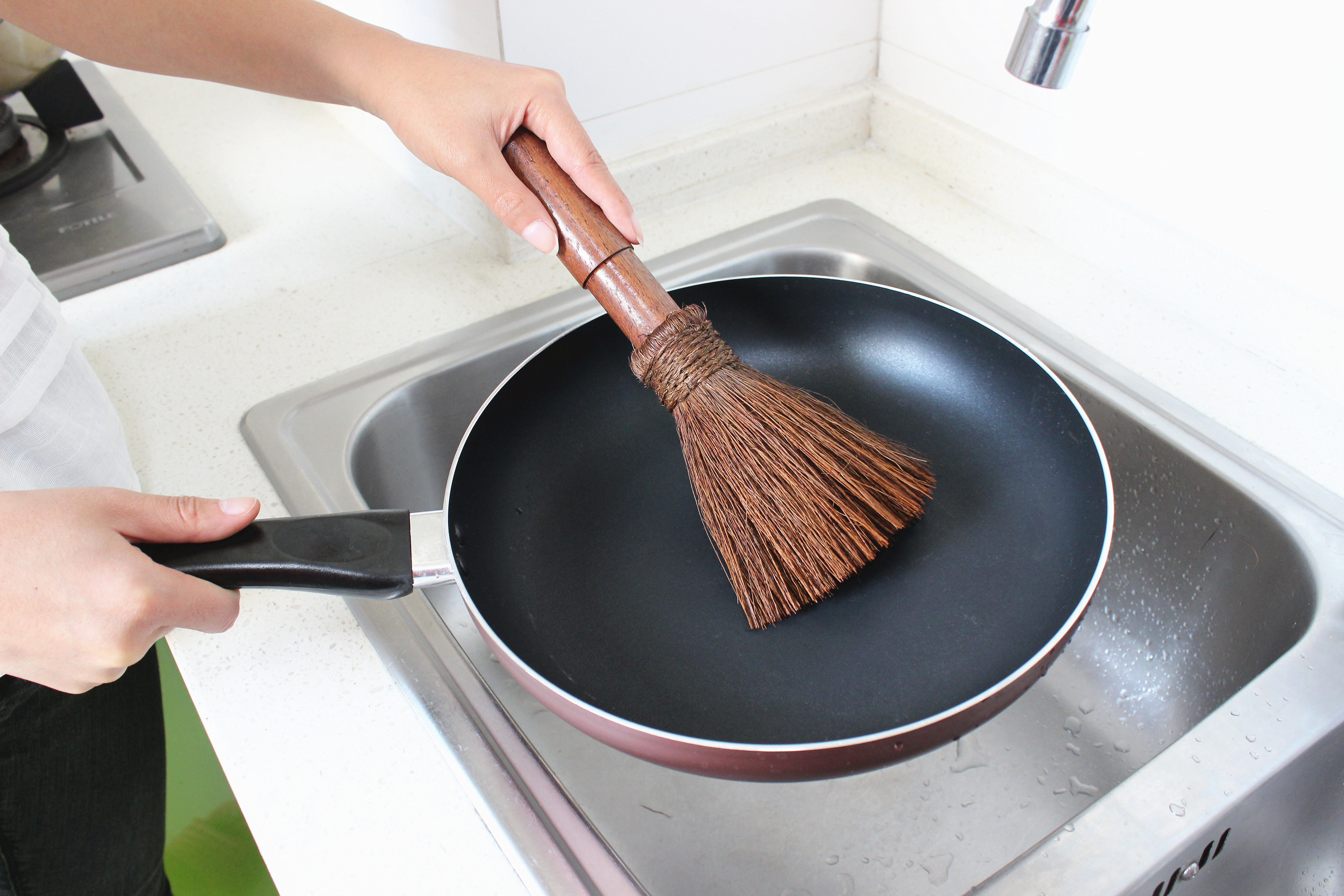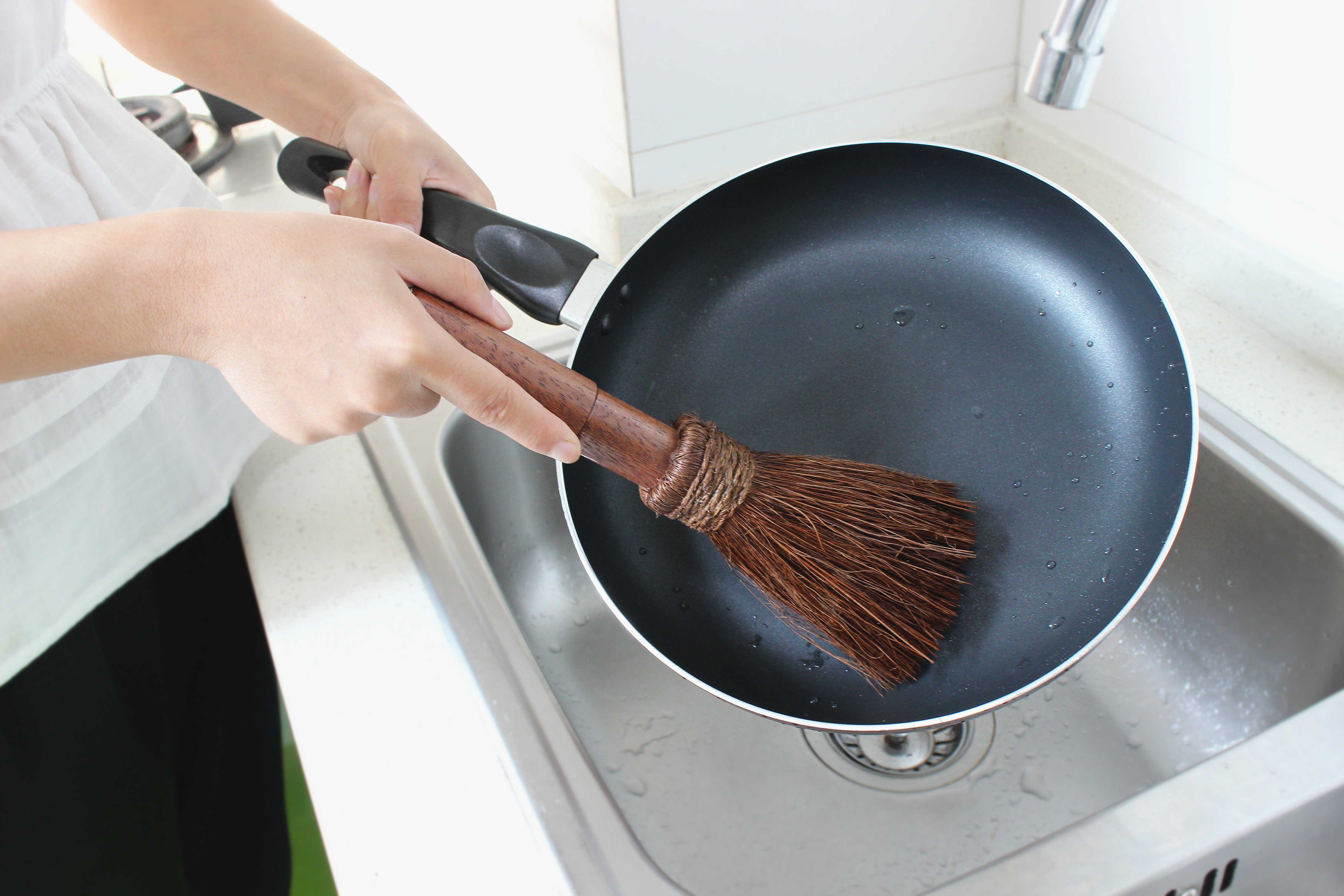 Деревянная ручка коричневая щетка горшок артефакт кокосовый ладонь кухонная раковина раковина