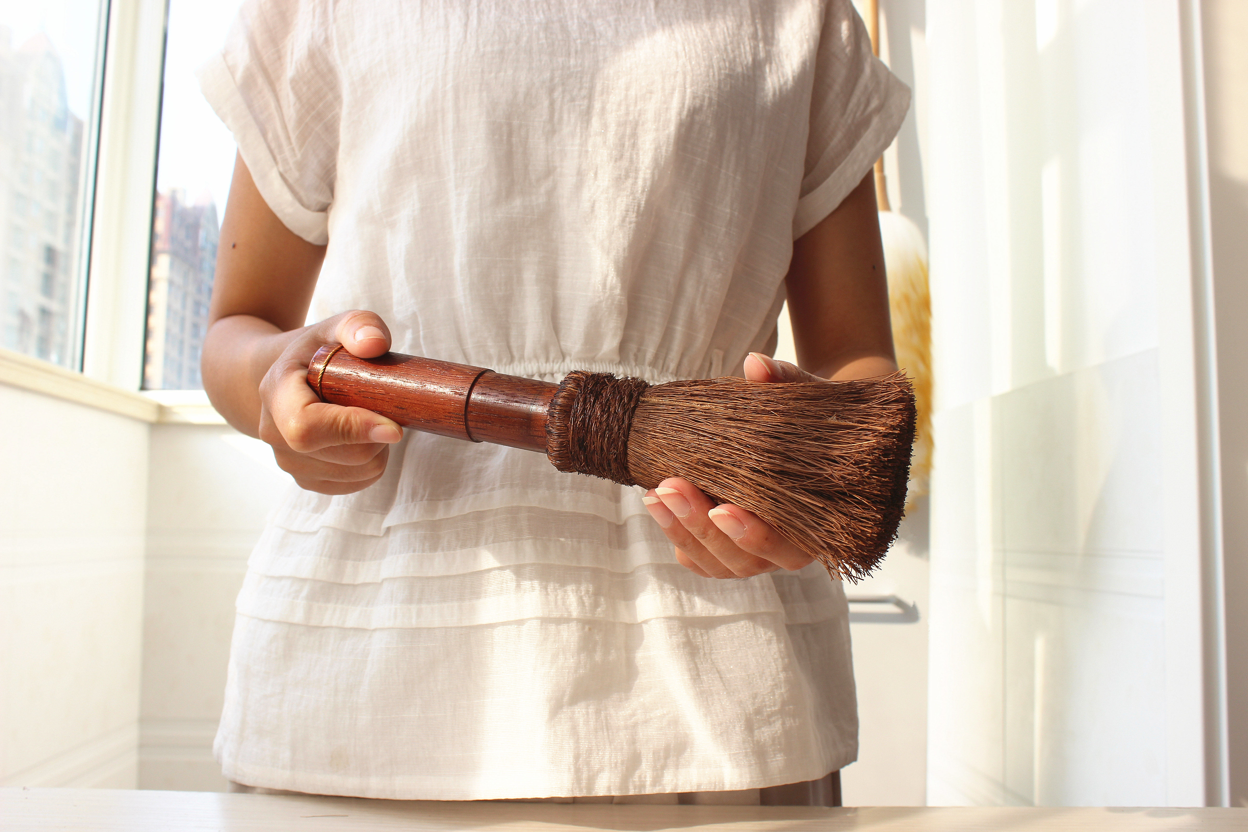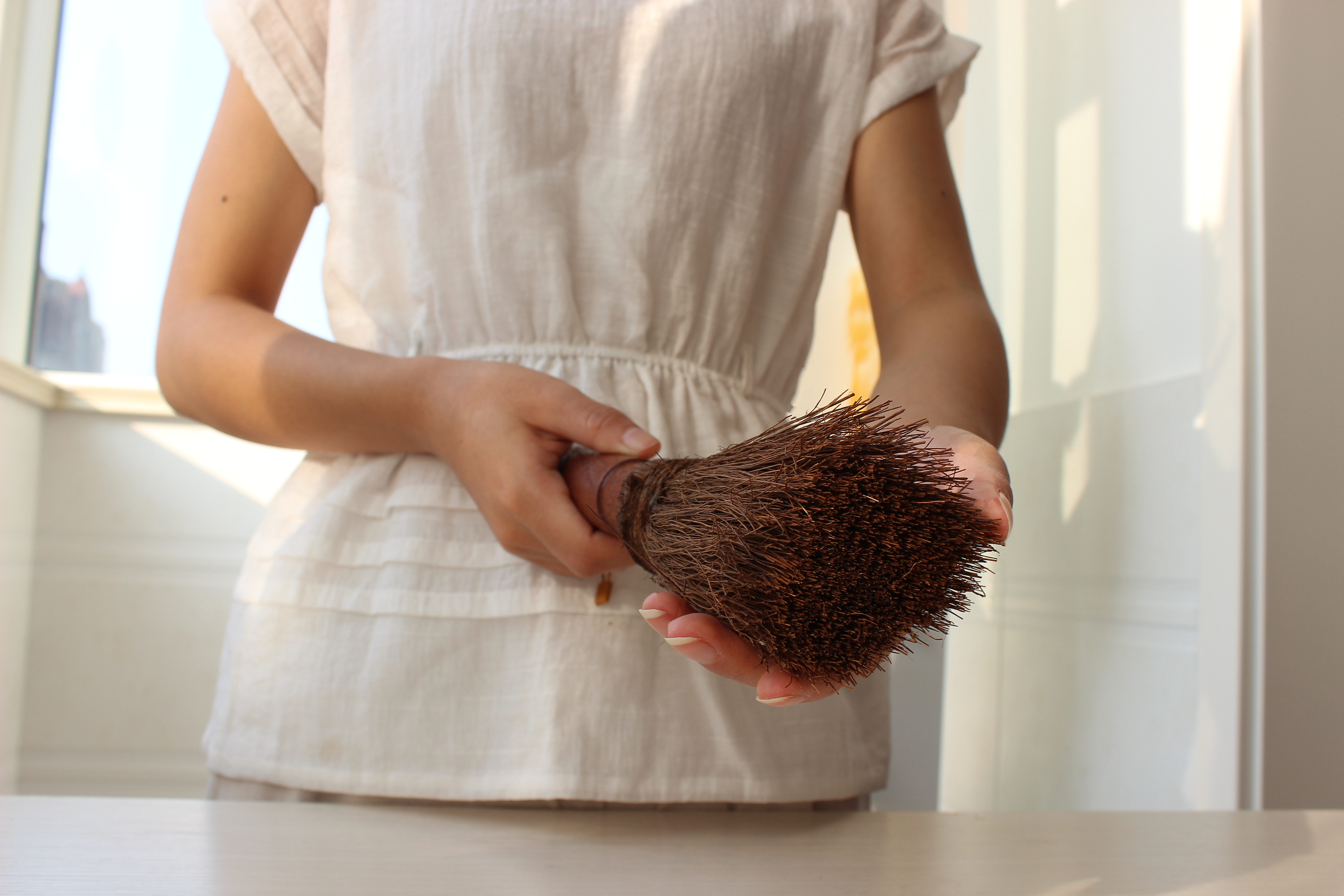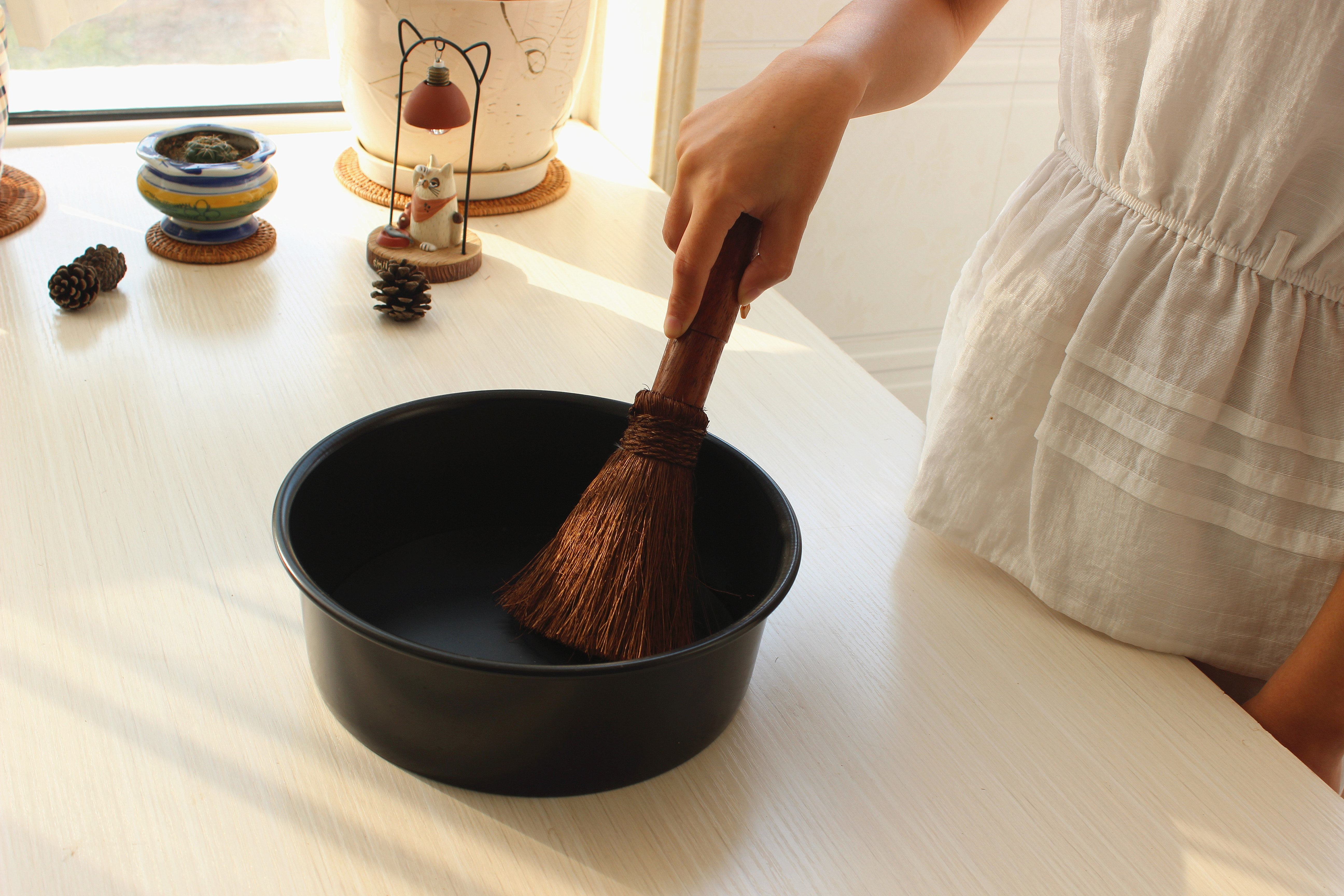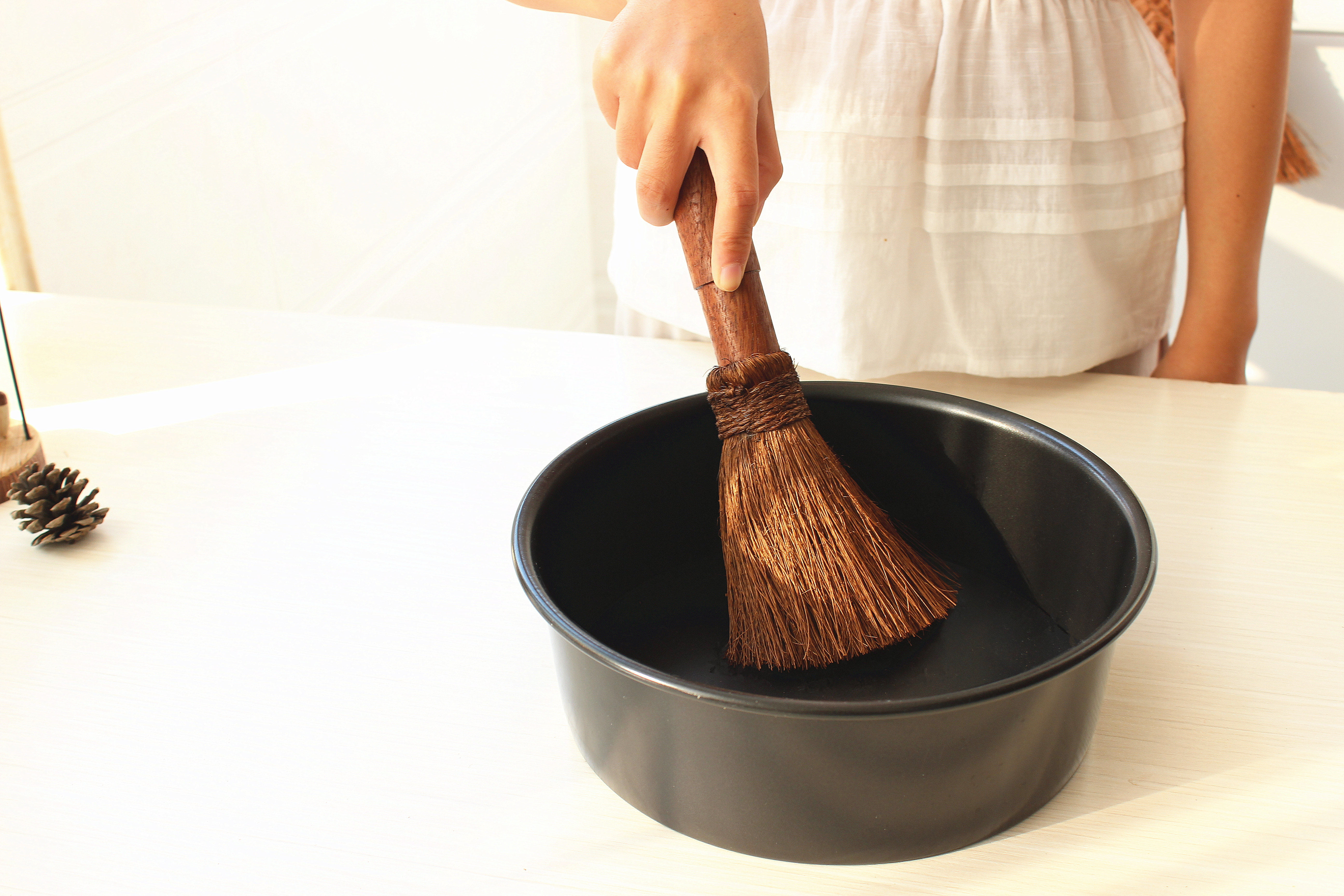 Деревянная ручка коричневая щетка горшок артефакт кокосовый ладонь кухонная раковина раковина