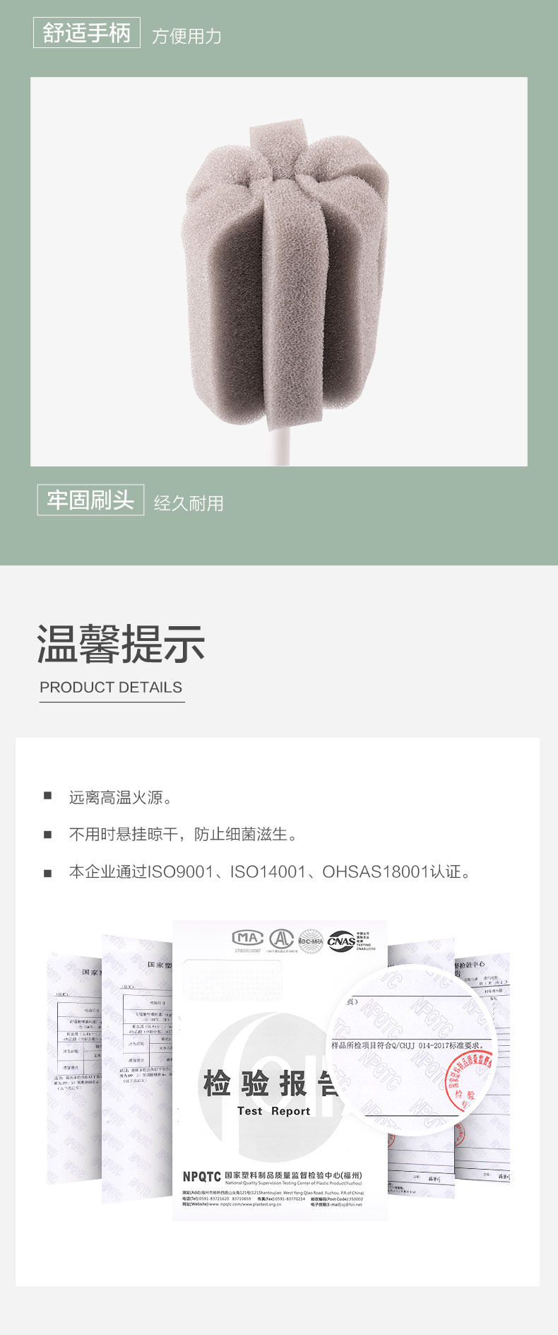 茶花 Поролоновый детский ершик для бутылочки, длинная щеточка, щетка