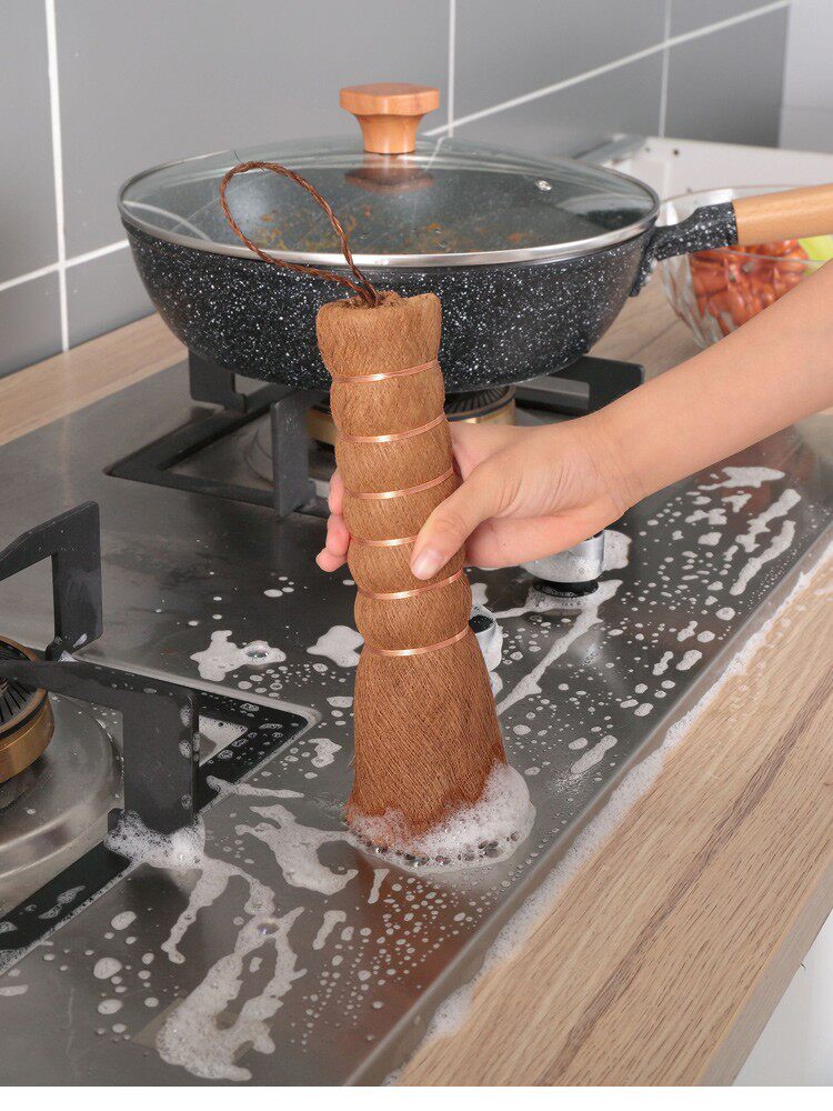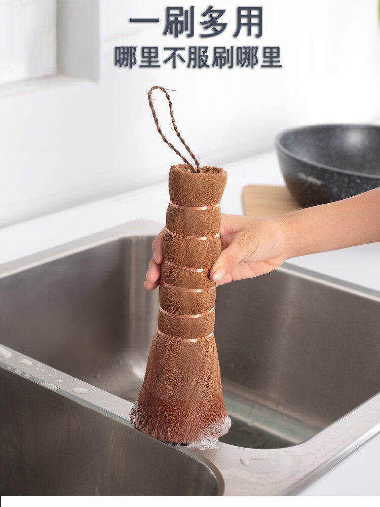 Натуральная кисточка для ладони для умывания горшка щетки щетки, длинная ручка, кухня специальная чистящая метла не повредит мягкой щетке для сковороды