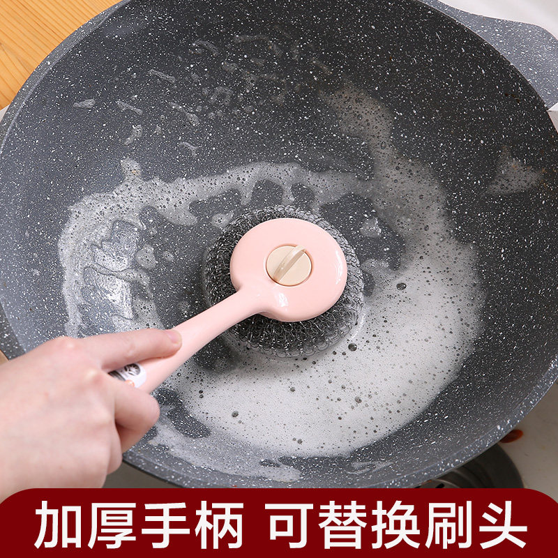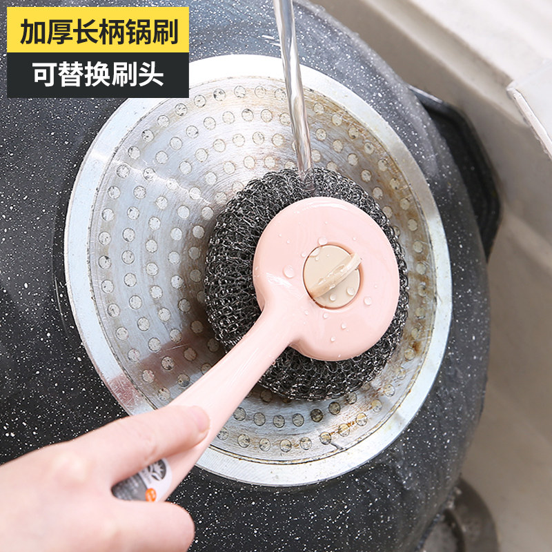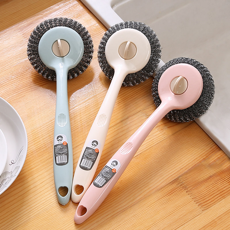 Длинная стальная проволочная щетка кухонная щетка, вымойте посуду, очистите шарик без нити, протрите Homefing Ball Homeficing Hevalling Pot.