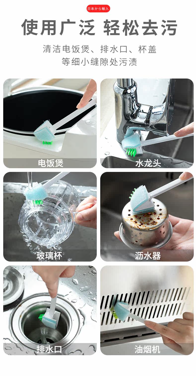 Японская импортная рисоварная прокатная кистонная кисточка для снятия раковины для удаления сточных вод, чтобы удалить зазор, многофункциональный артефакт очистки мертвых угла