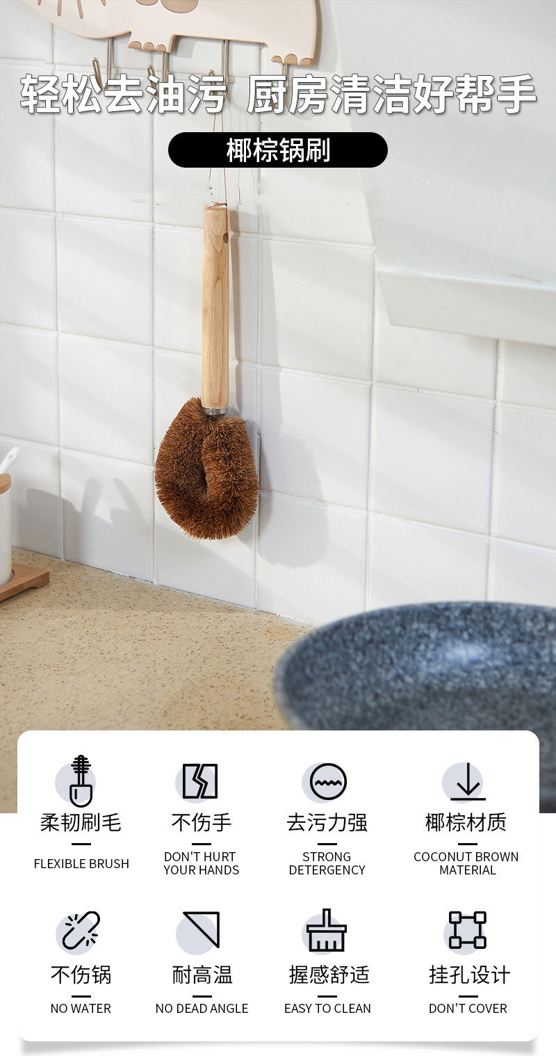Кокосовая ладонь деревянная ручка щетки кухня без масла для удаления масла, чтобы удалить пятна, смазать плиту ресторана, вымыть посудомывание, почистить артефакт очистки бассейна