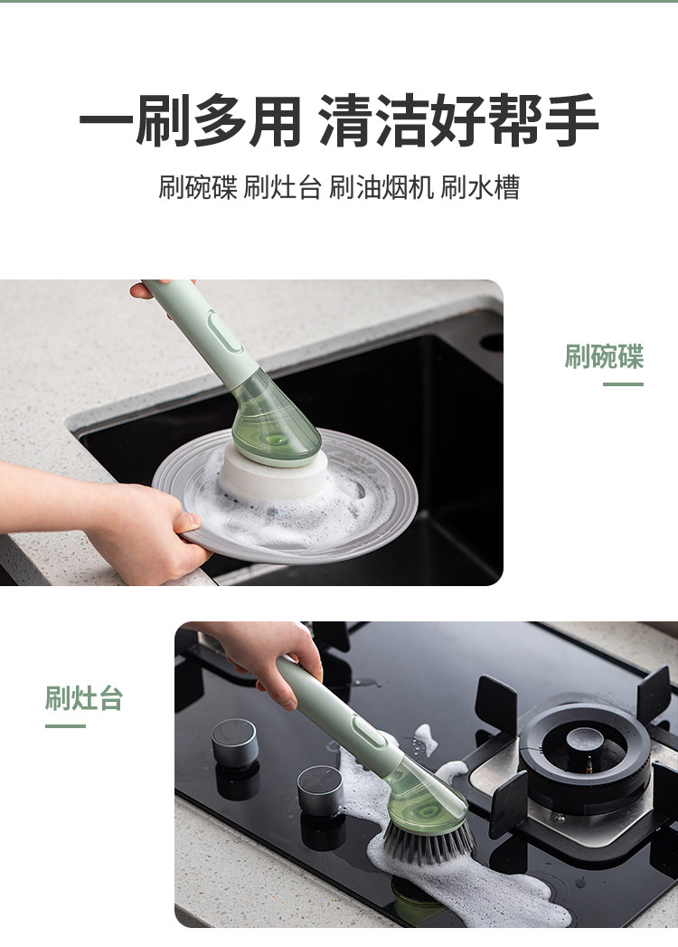 - [Light Bud Green] Длинная ручка и жидкая круглая головка без мертвых концов (отправьте головку губки щетки)