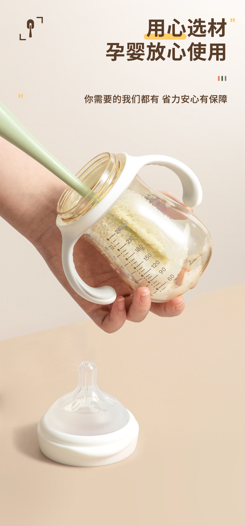 Мочалка, ершик для бутылочки, щеточка, поролоновая щетка со стаканом