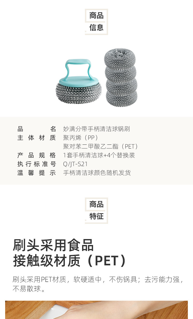 Miaoman Split Hand Hande Cot щетка Очистка шариковая стальная проволока Комбинированная кисточка для щетки щетки для мытья кастрюли и вымыть
