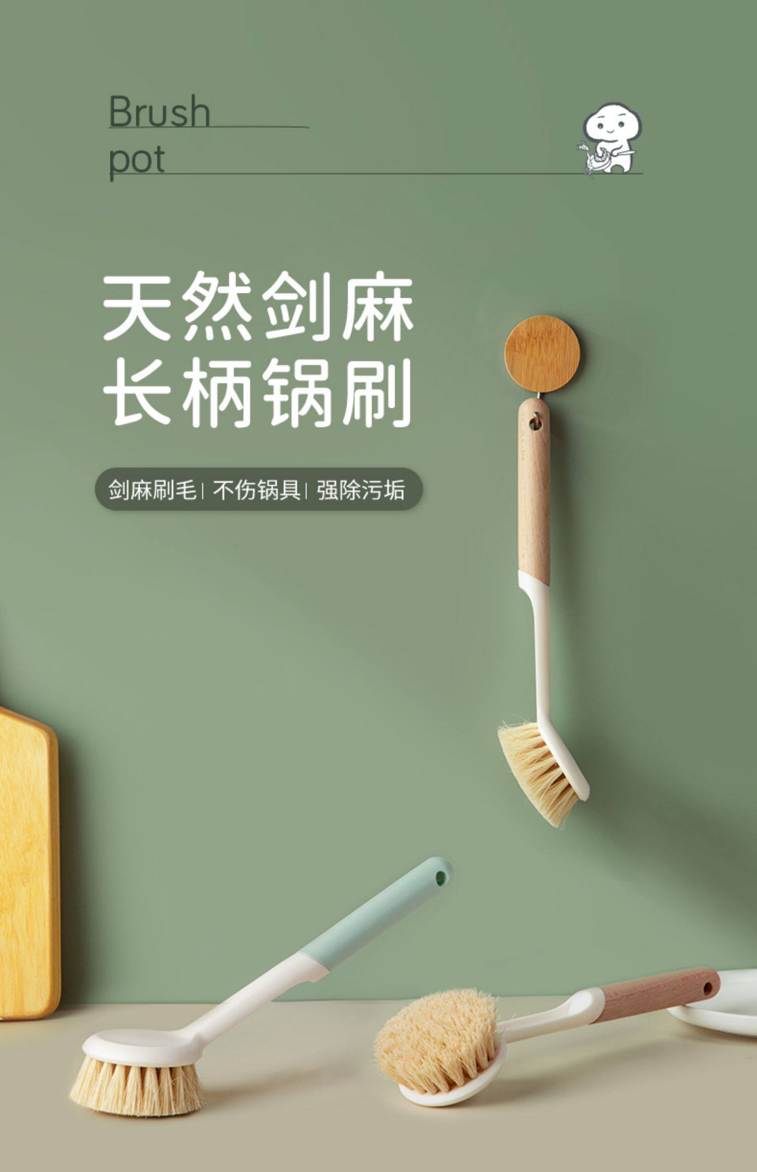 云蕾 Натуральная сисальная горшка щетка для очистки посудомоечной кисточки можно подвеса