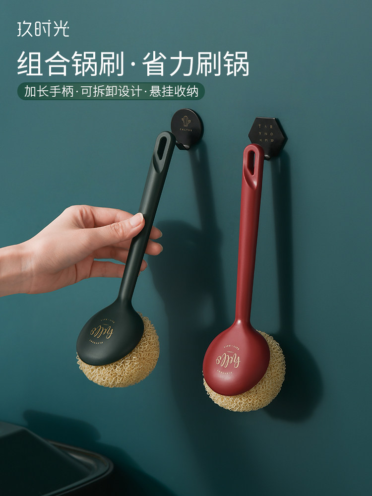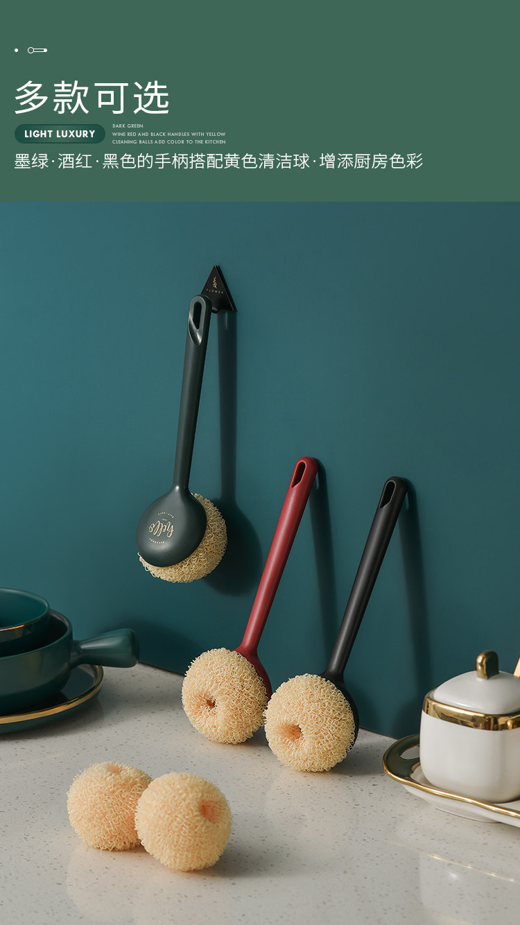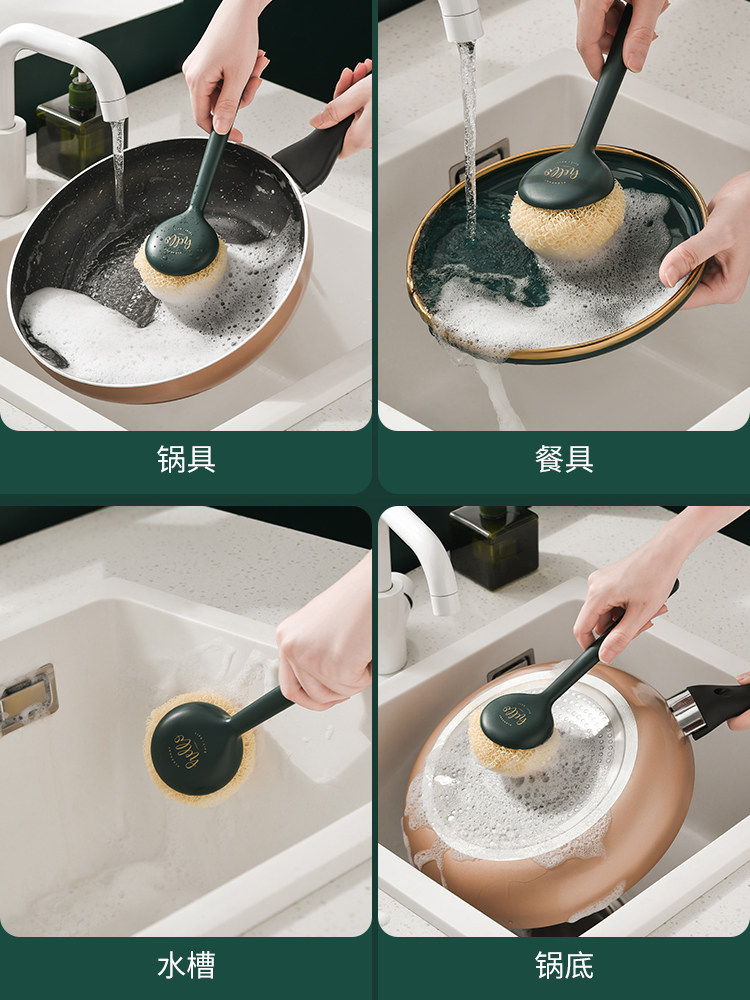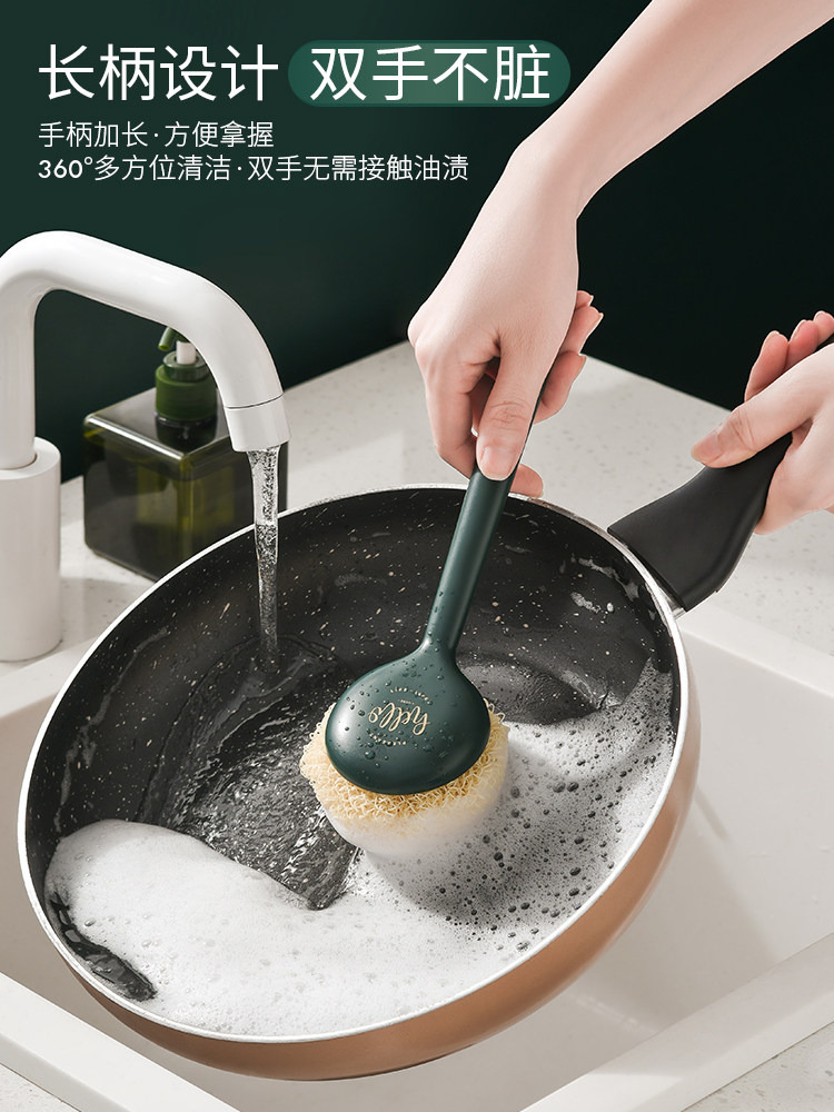 Чистка кастрюли, горшка, белостная щетка, кастрюля, кухня, специальная стальная проволочная шар, длинная ручка, домашняя домохозяйство, не повредить кастрюлю, вымыть посуду