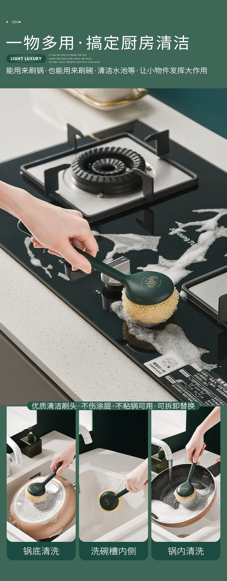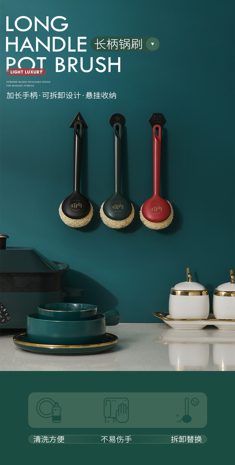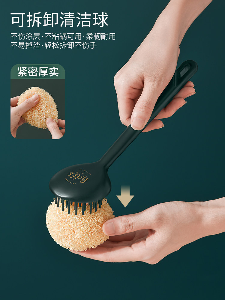 Чистка кастрюли, горшка, белостная щетка, кастрюля, кухня, специальная стальная проволочная шар, длинная ручка, домашняя домохозяйство, не повредить кастрюлю, вымыть посуду