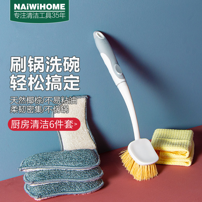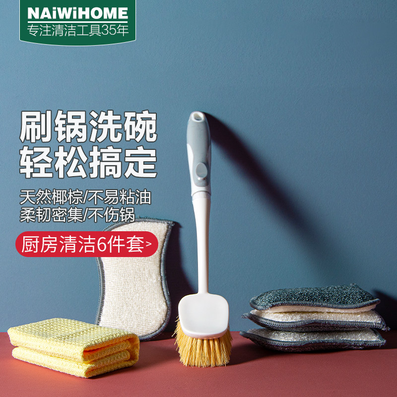 Щетка для мытья посуды из натурального сизаля с длинной ручкой, щетка для мытья посуды, щетка из кокосовой пальмы, кухонная с антипригарной щеткой для обеззараживания масла, не повреждает кастрюлю