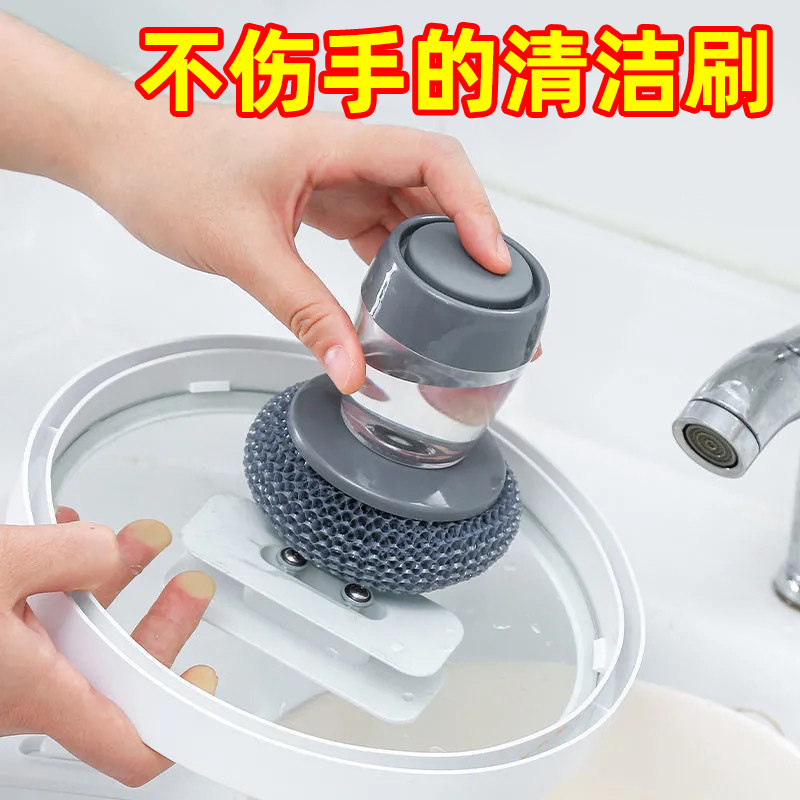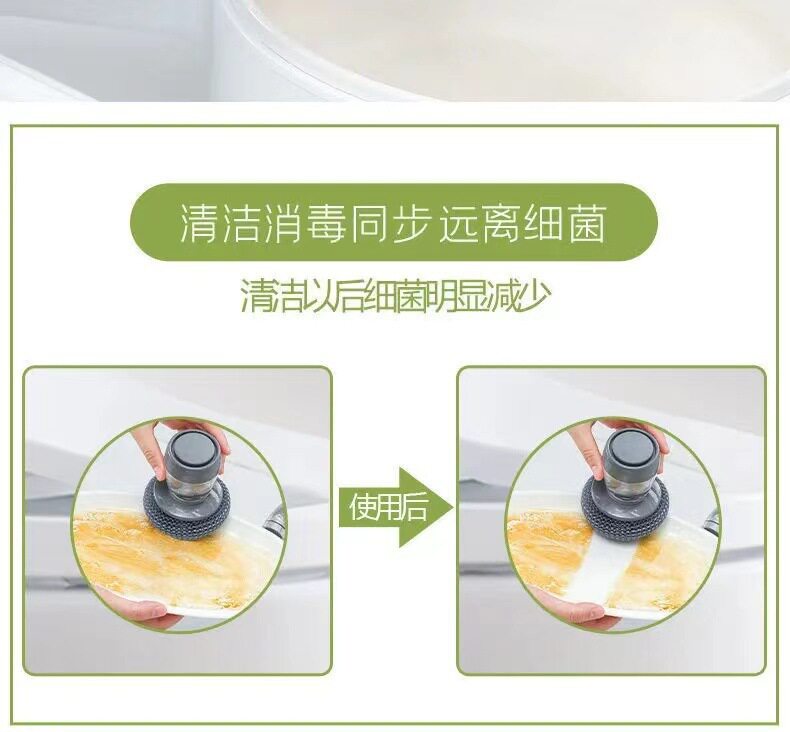 Артефакт горшка автоматически добавляйте жидкость в щетку для сковороды, нажмите на стальный проволочный шарик, вымойте посуду, смачивайте длинную очистку щетки кухни домой