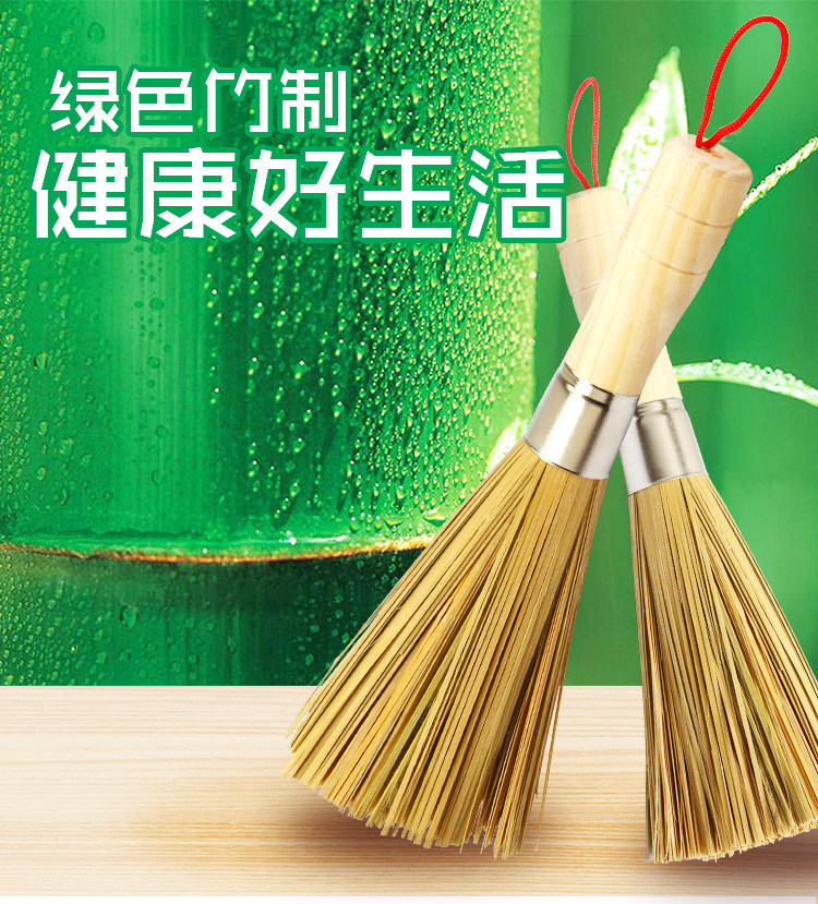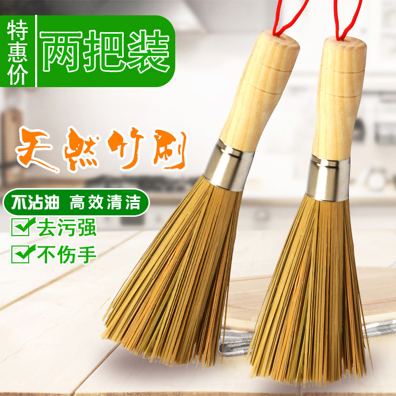 Бамбуковый горшок с горшками, бамбук с длинной деревянной ручкой, бамбуком, неплохом маслом, дезактивирует, вымойте щетку, кисть wok щетки для артефакта, чистая