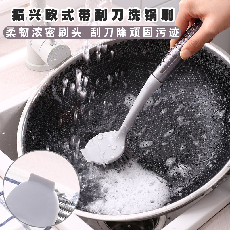 振兴 Скребок в европейском стиле с длинной ручкой для мытья посуды, мытья посуды, скребка для пятен, щетки с антипригарным покрытием, работы по дому, уборки кухни