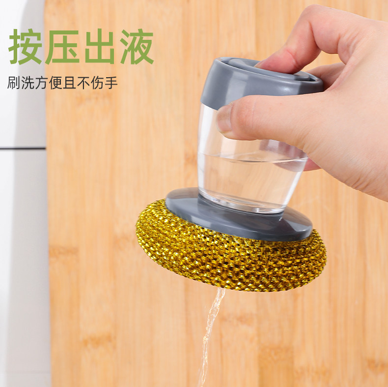 Артефакт горшка автоматически добавляйте жидкие блюда, почистите кухню дома для мытья горшка, губчатая щетка стальная проволочная ручка с длинной ручкой для очистки