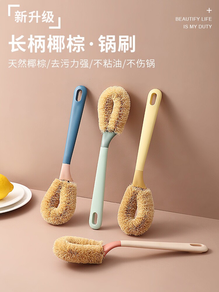 捌庚戈 Длинная коричневая -коричневая горшка щетка газовая плита кухня чистая щетка, вымыть посудомоечный бой, масляная грязная кокосовая пальма Бесплатная доставка