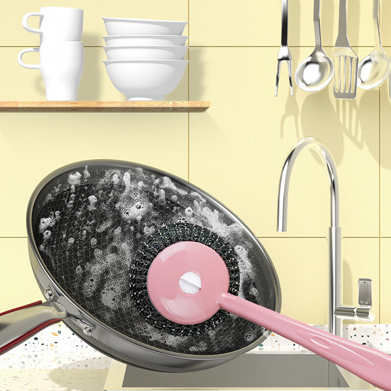 Мытья кухня для мытья горшка, длинная ручка для мытья посуды, блюда из нержавеющей стали для мытья шар для мытья шарика, щетка дома большая чистая щетка горшок артефакт