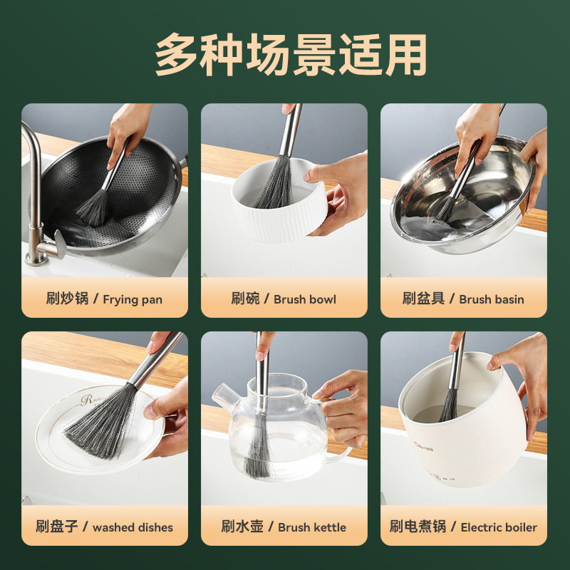 Артефакты чистки горшка, горшки, посуды, щетки, кухня специальная домашняя сталь из нержавеющей стали с длинной ручкой.