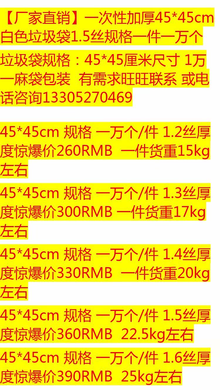 Одноразовый белый мусорный мешок, увеличенная толщина, 45×45см