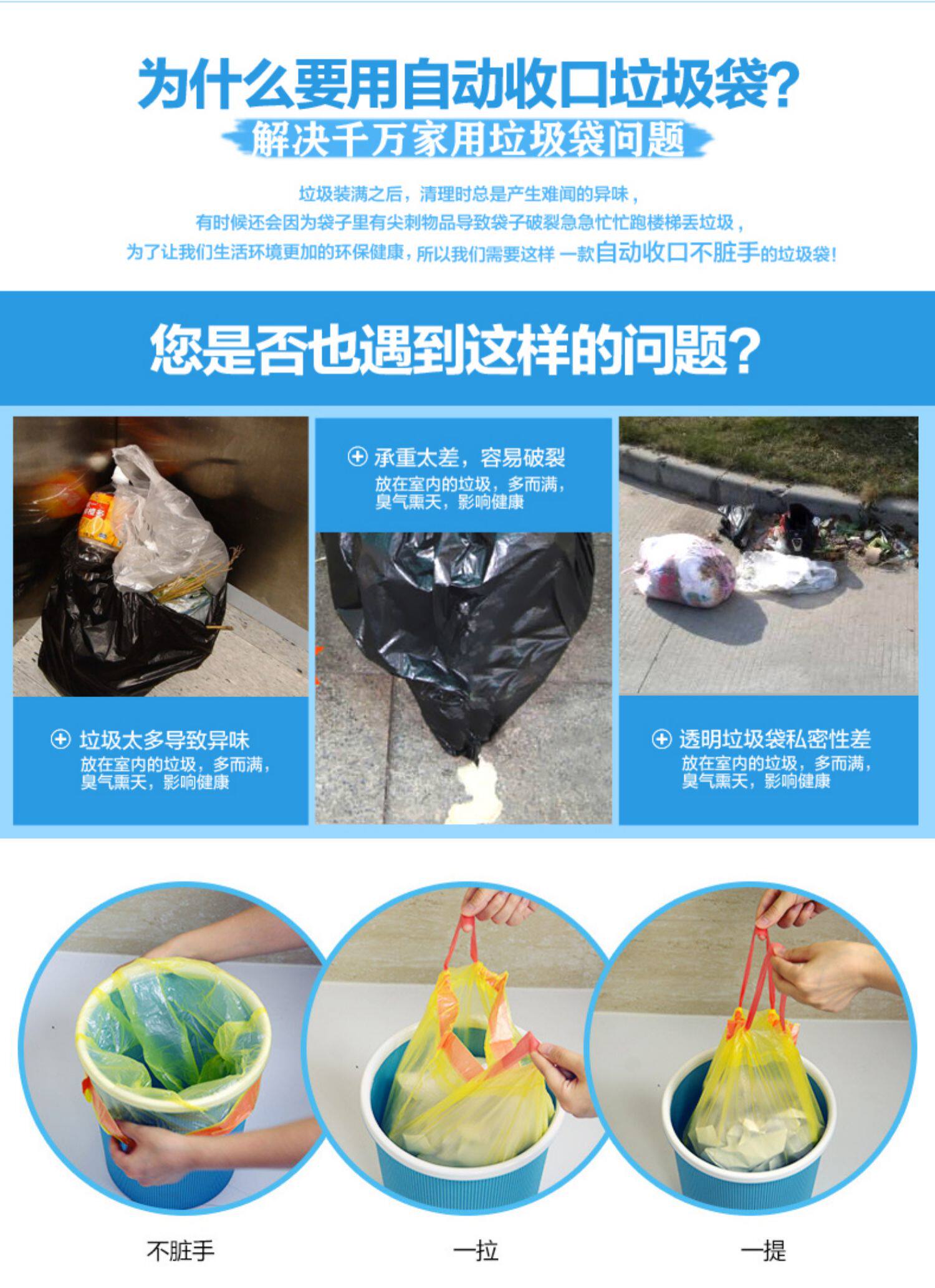 Автоматический портативный экологичный гигиенический большой мусорный мешок для домашнего использования, увеличенная толщина, на шнурках