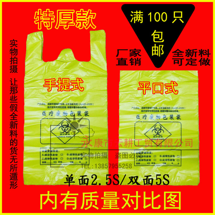 Очень густой желтый медицинский пакет с мусором 15L20L30L50L60L100L240 -литр отходов Специальный пластиковый пакет Специальный пластиковый пакет