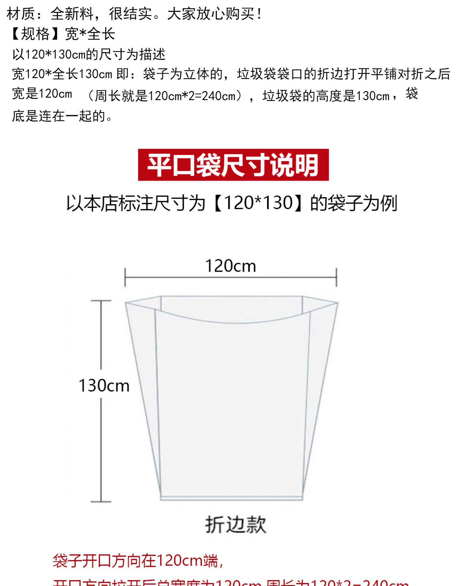 Большой пакет для мусора утолщенный лишний густой пластиковый пакет Большой размер плоский пакет для мусора 80*90*100*110*120*130