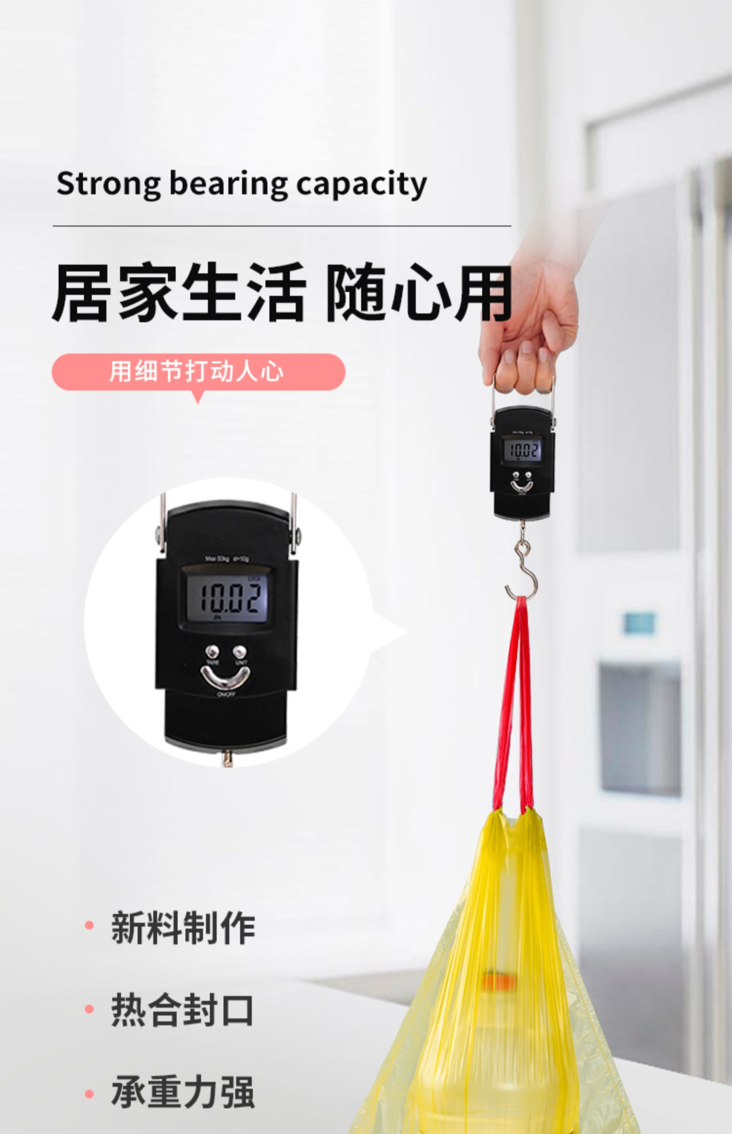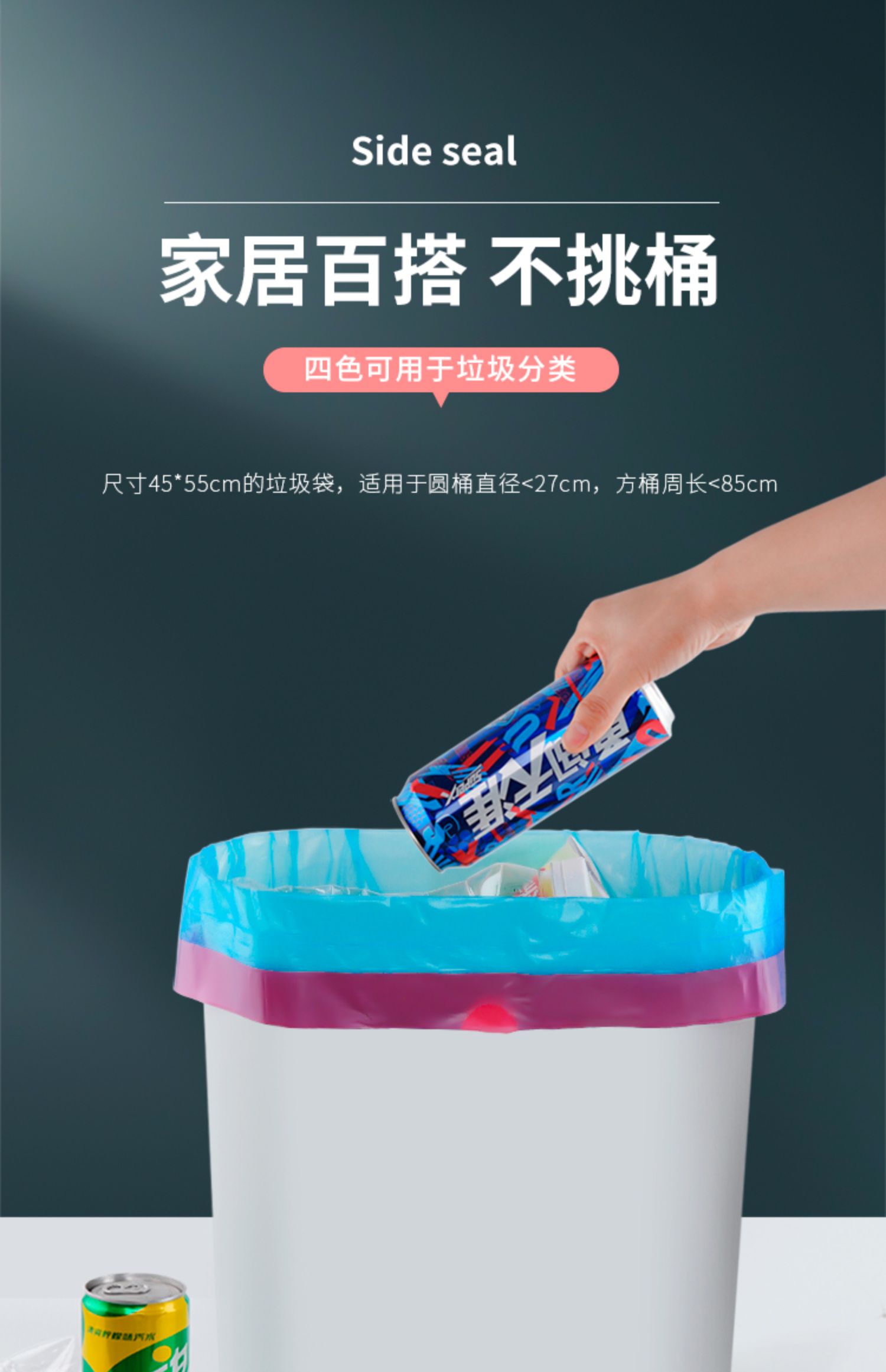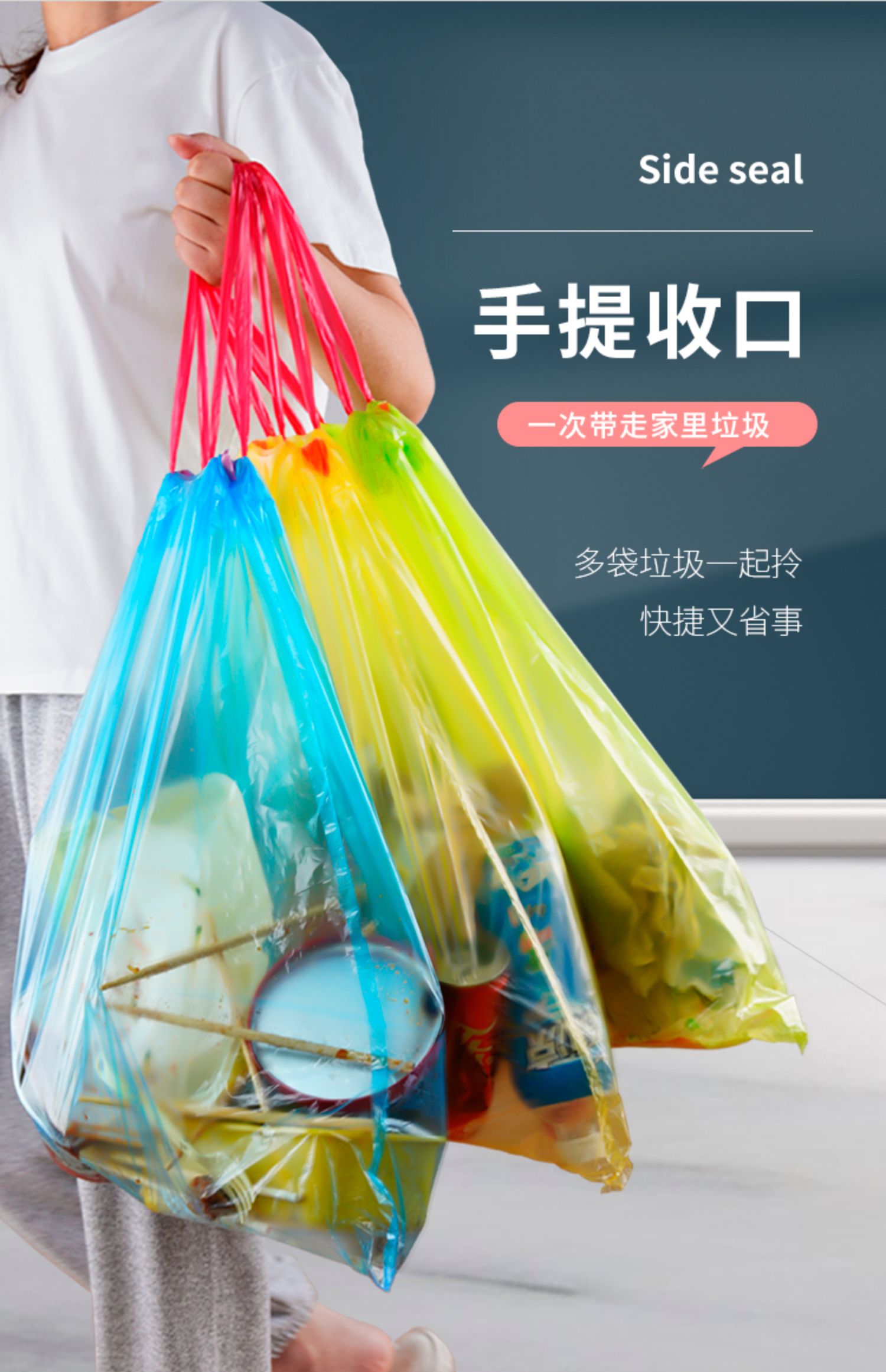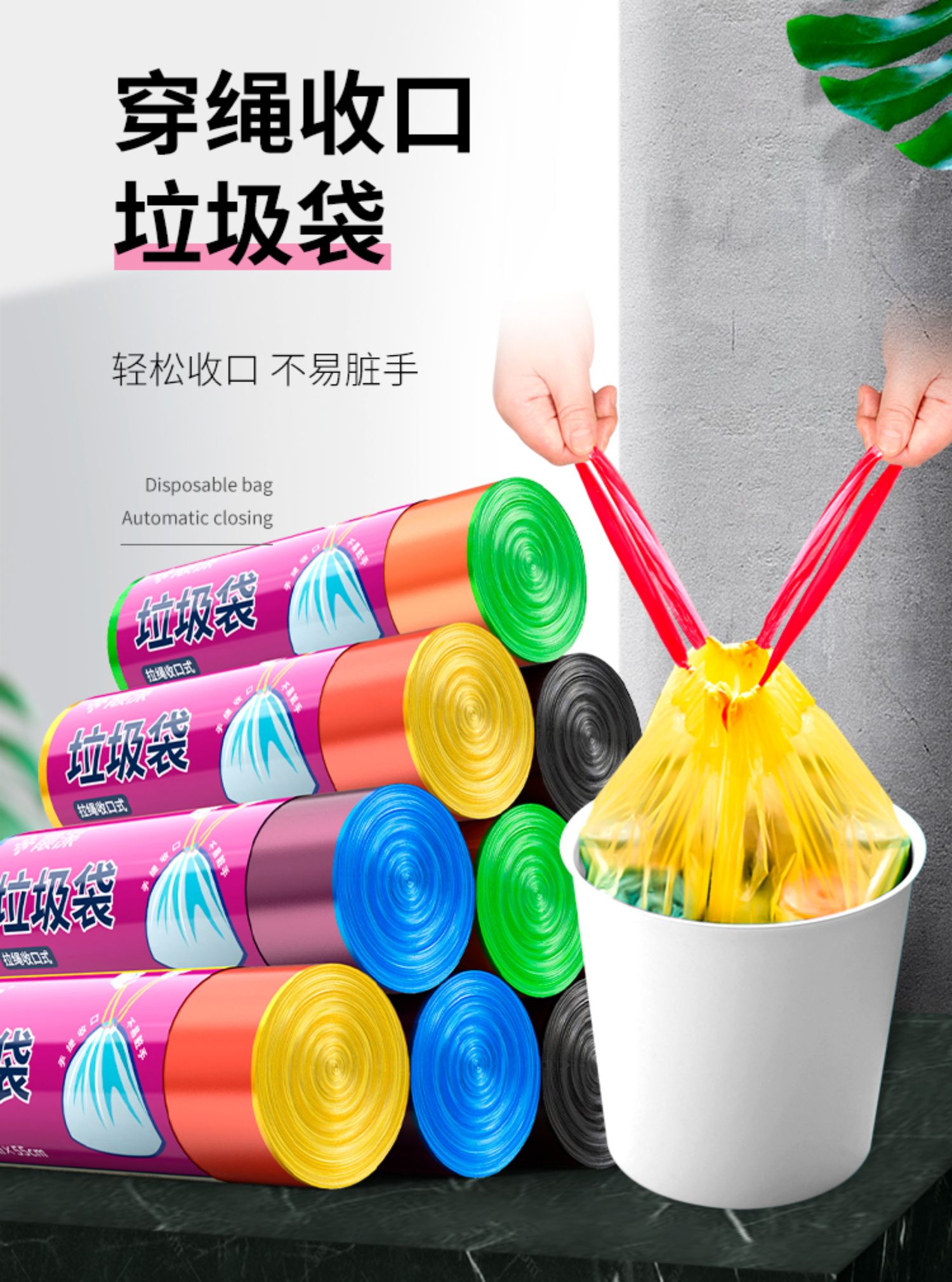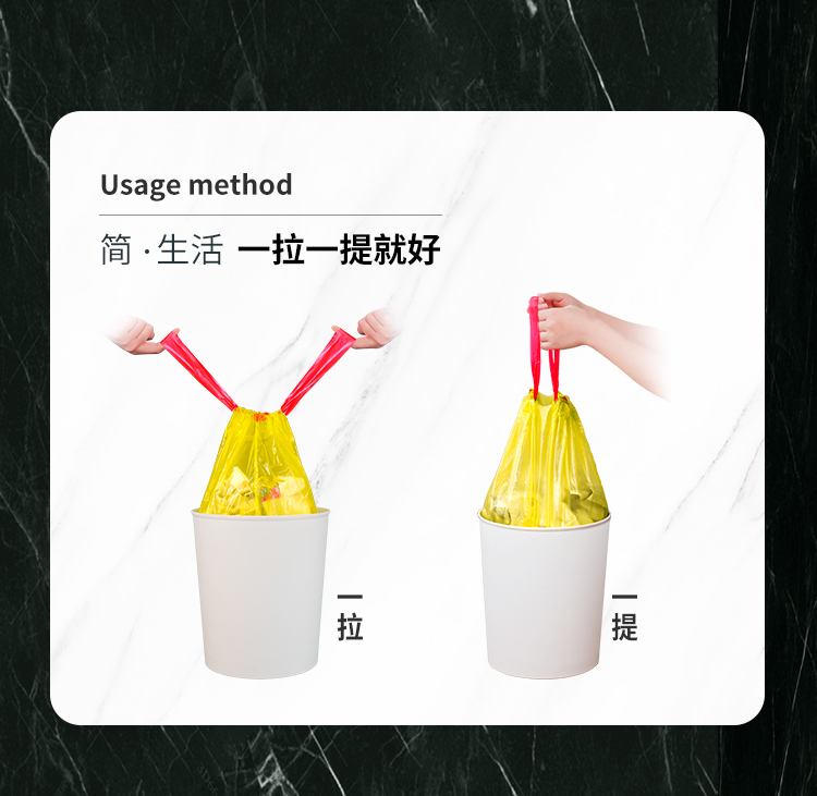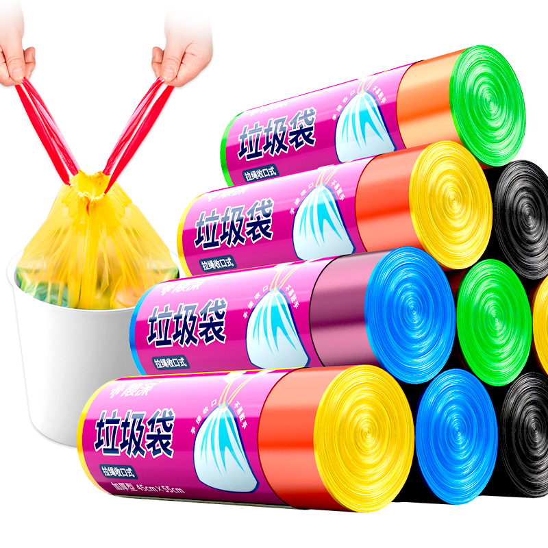 靓涤 Автоматический портативный черный пластиковый большой мусорный мешок для домашнего использования, увеличенная толщина, на шнурках