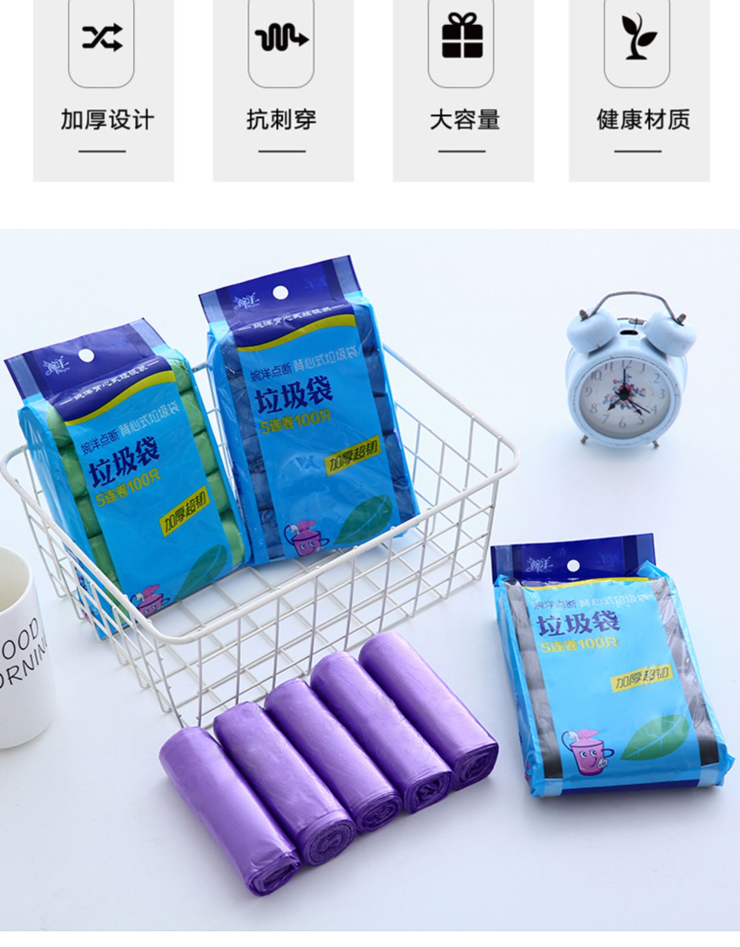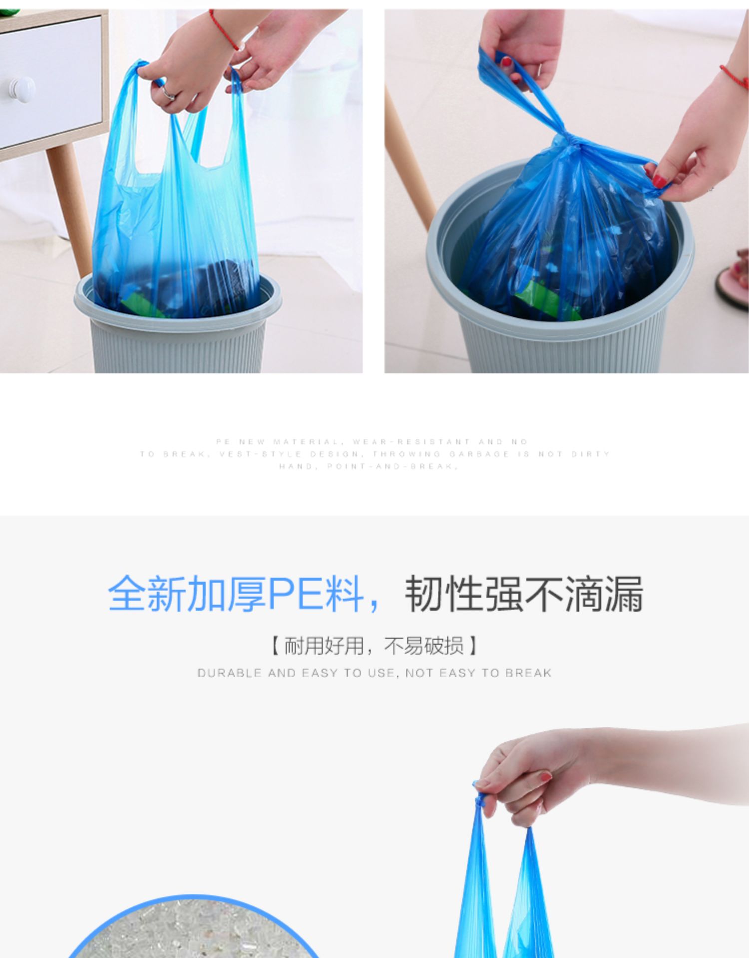 Жилет, большой портативный одноразовый черный пластиковый мусорный мешок для домашнего использования, увеличенная толщина