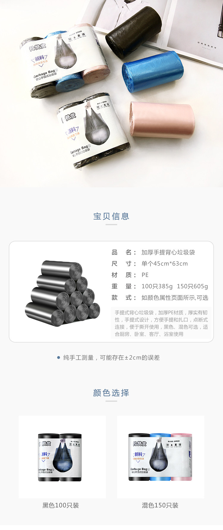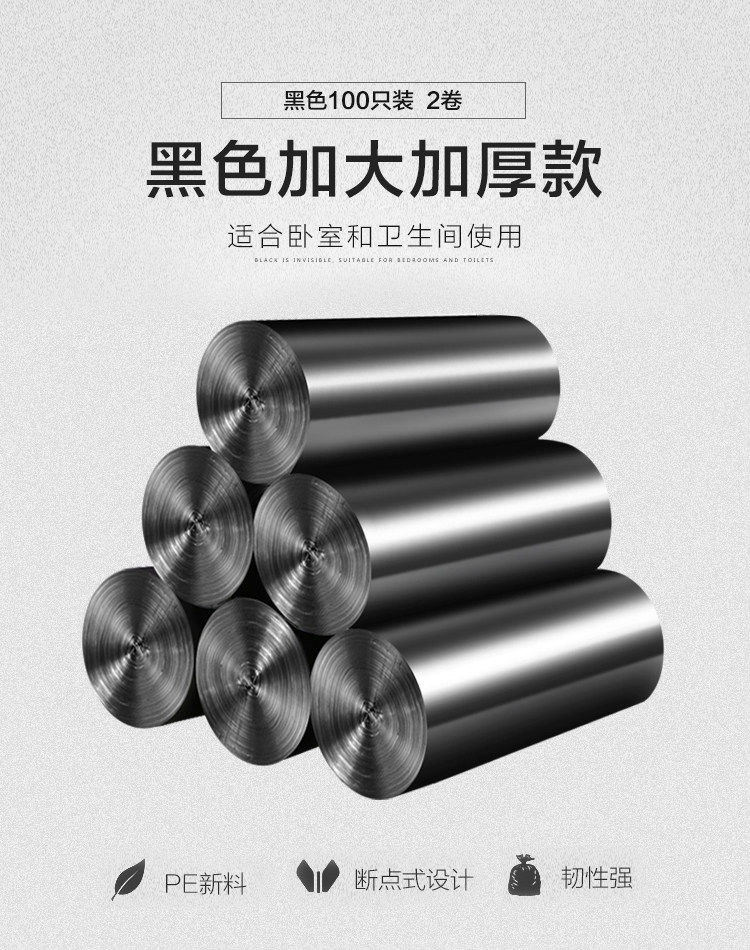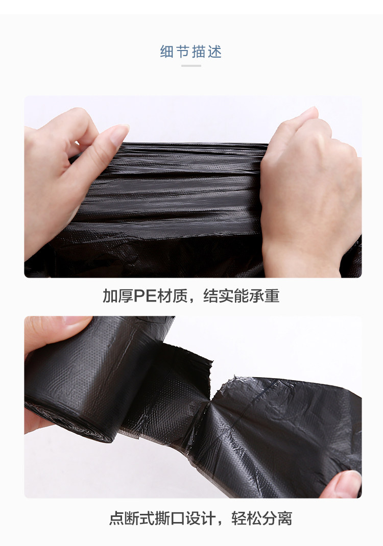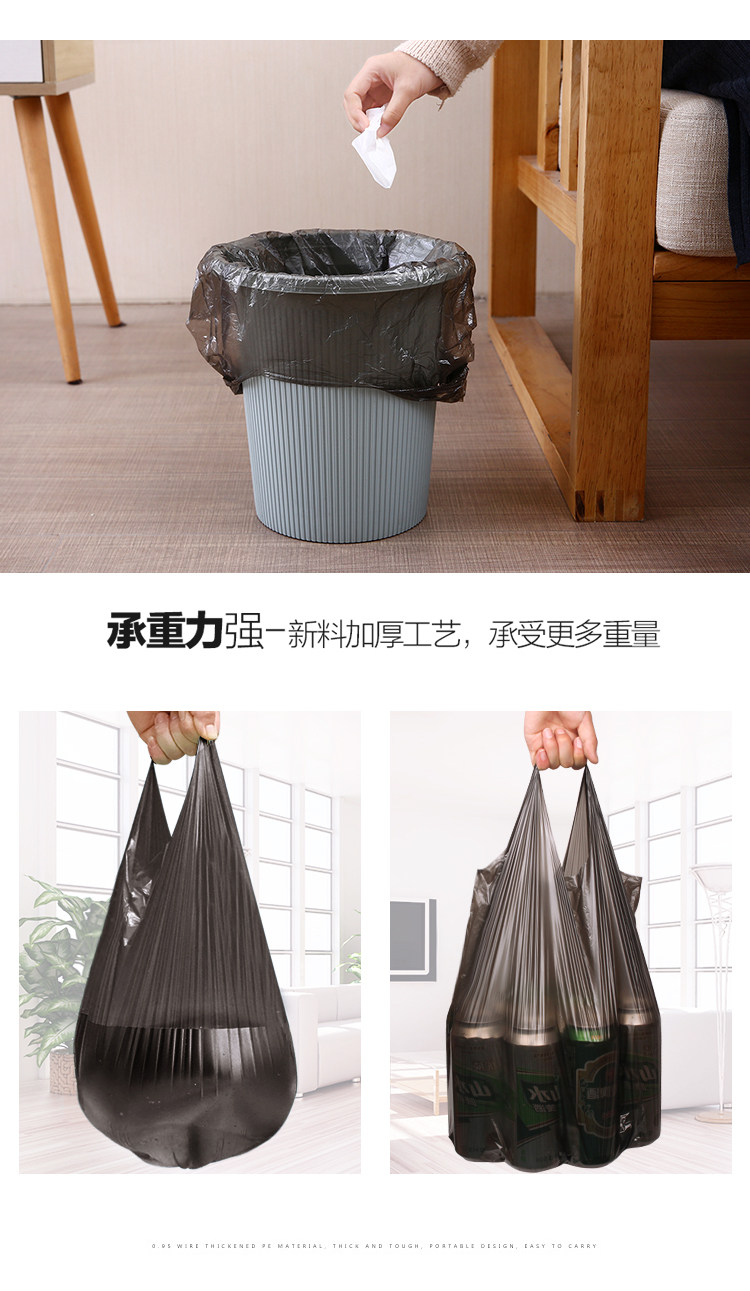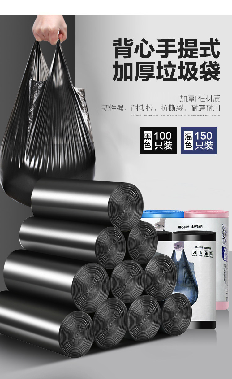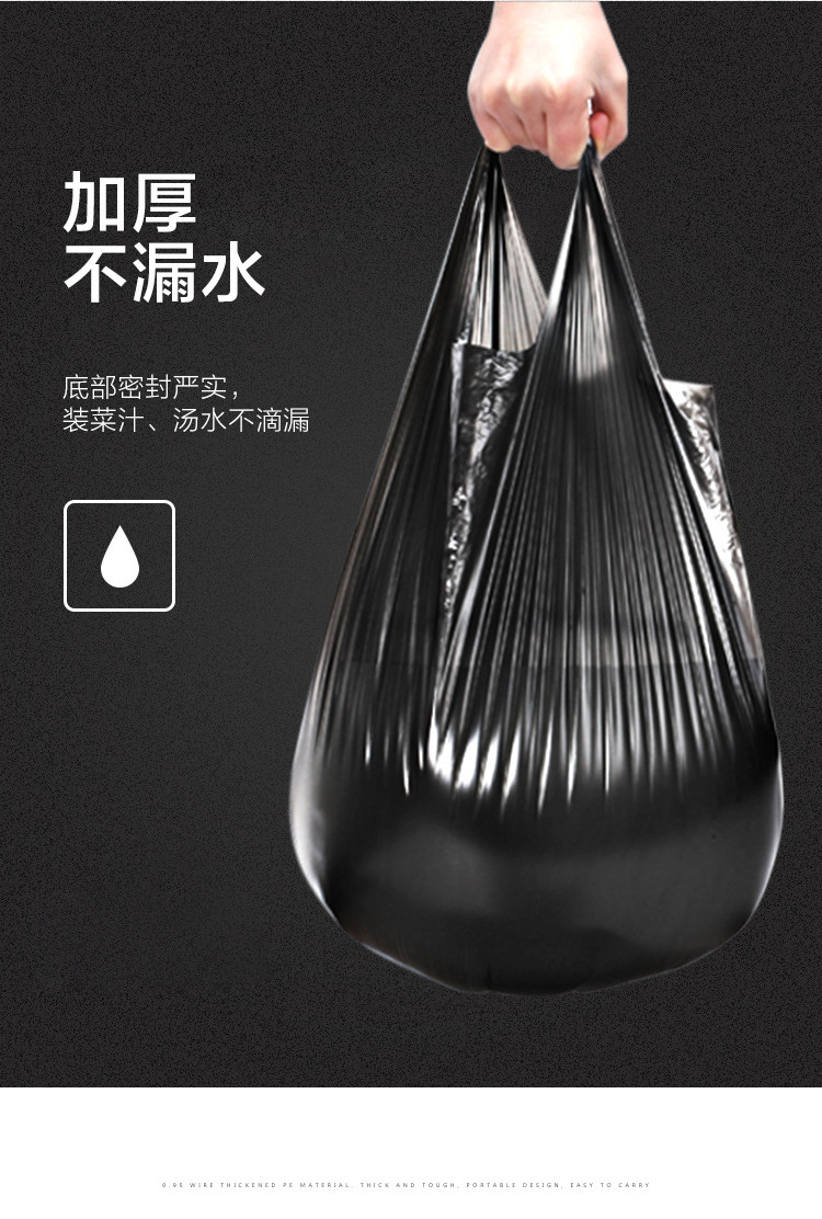 Большой портативный черный одноразовый пластиковый мусорный мешок, увеличенная толщина