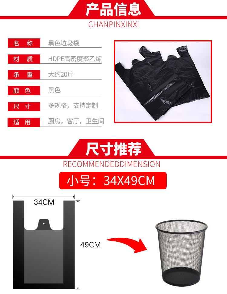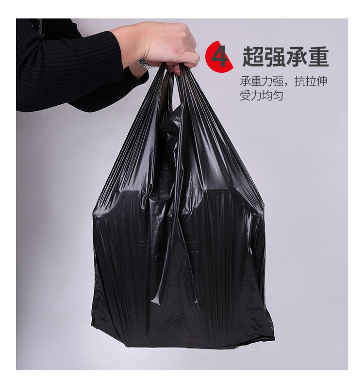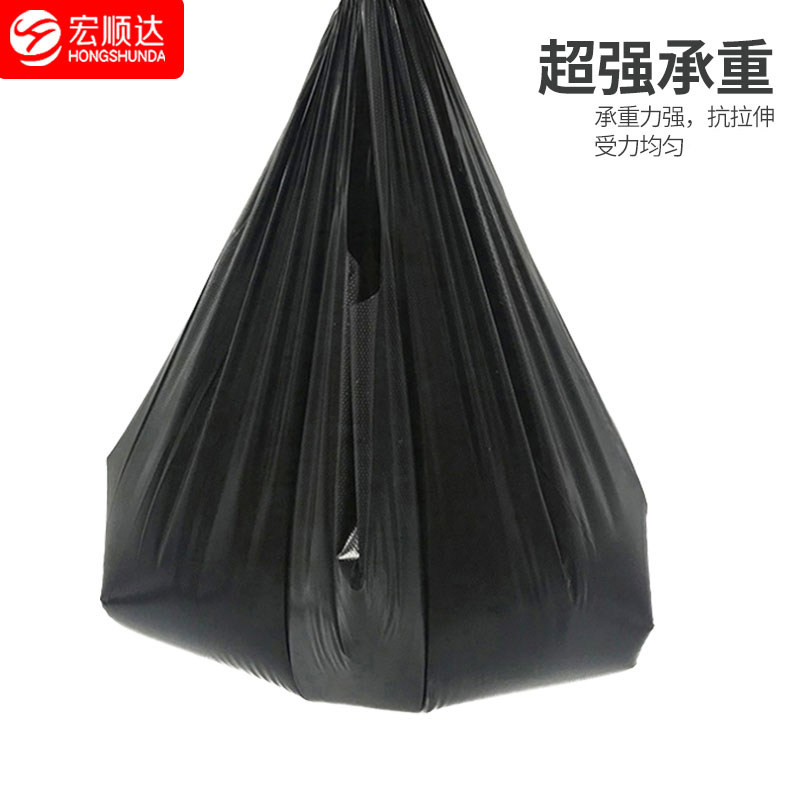 Пластиковая большая черная портативная сумка, одноразовый жилет для коммерческого использования, мусорный мешок, увеличенная толщина