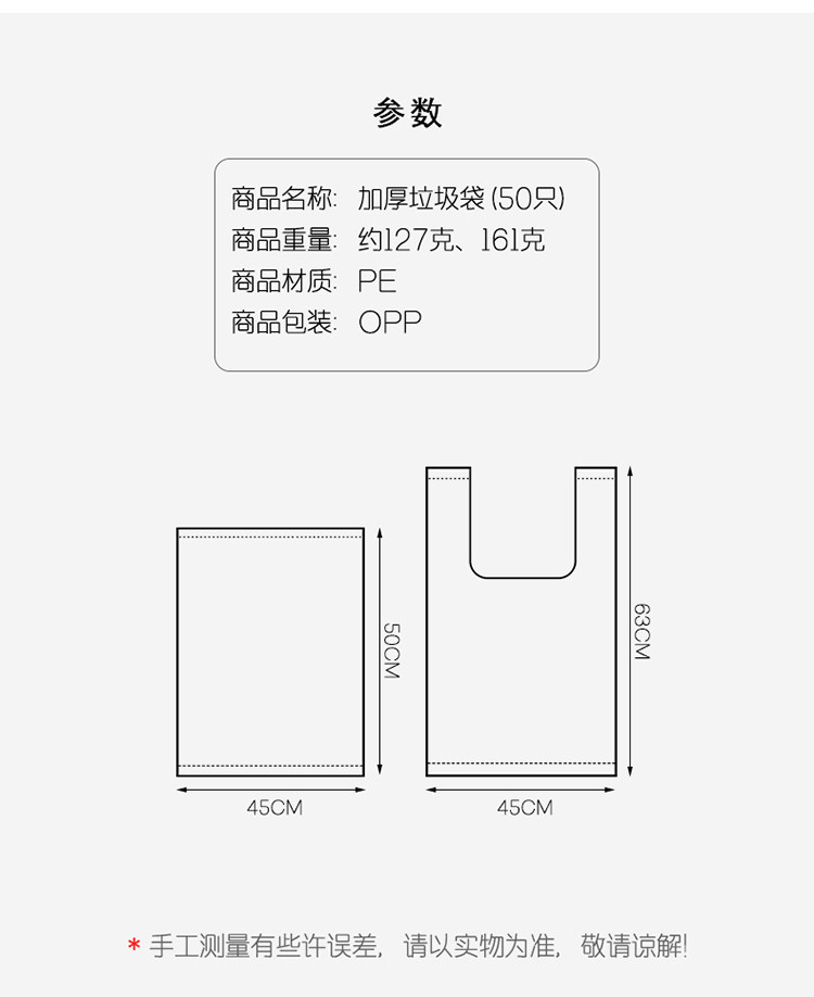 Одноразовый мусорный мешок, черный портативный пластиковый большой жилет, увеличенная толщина