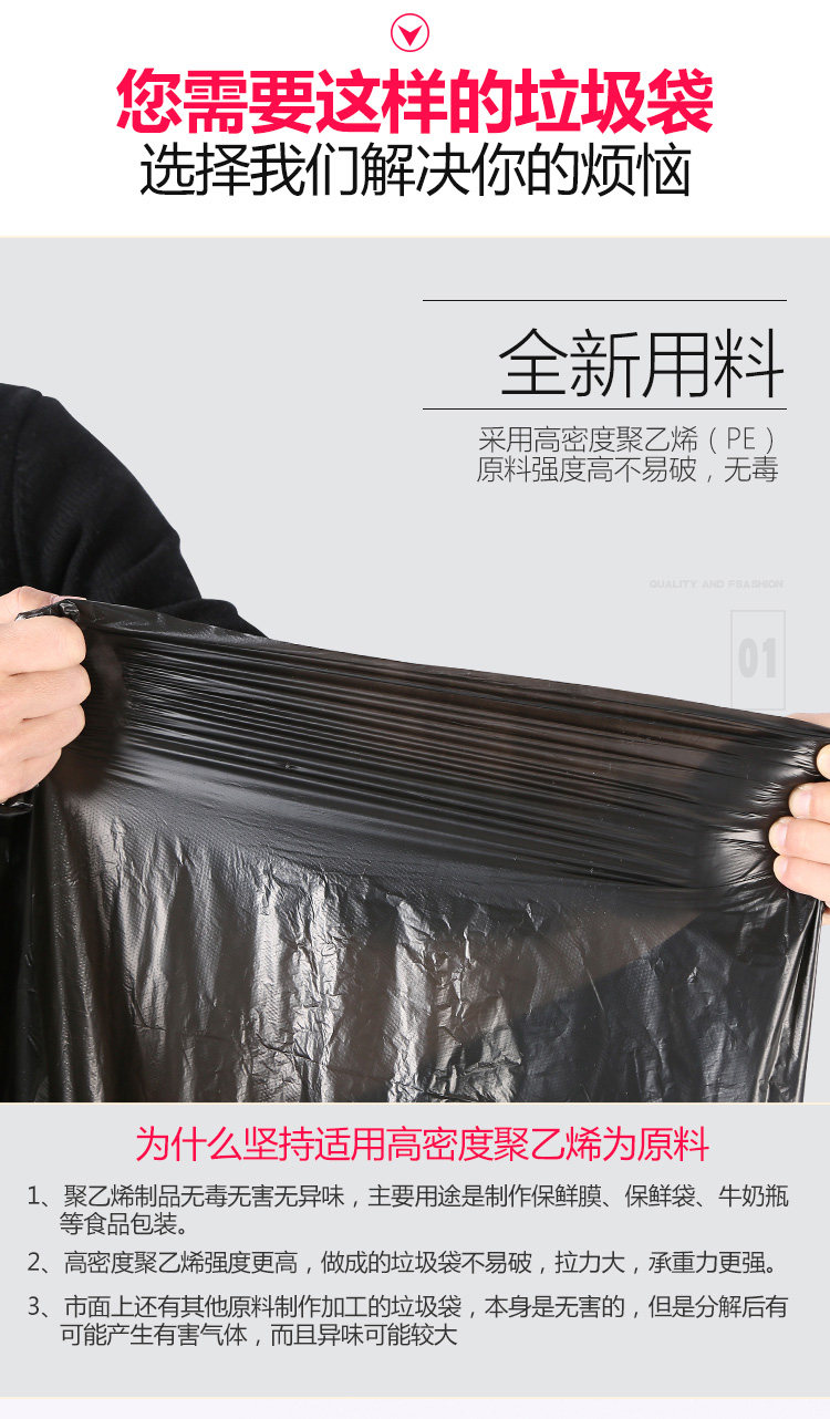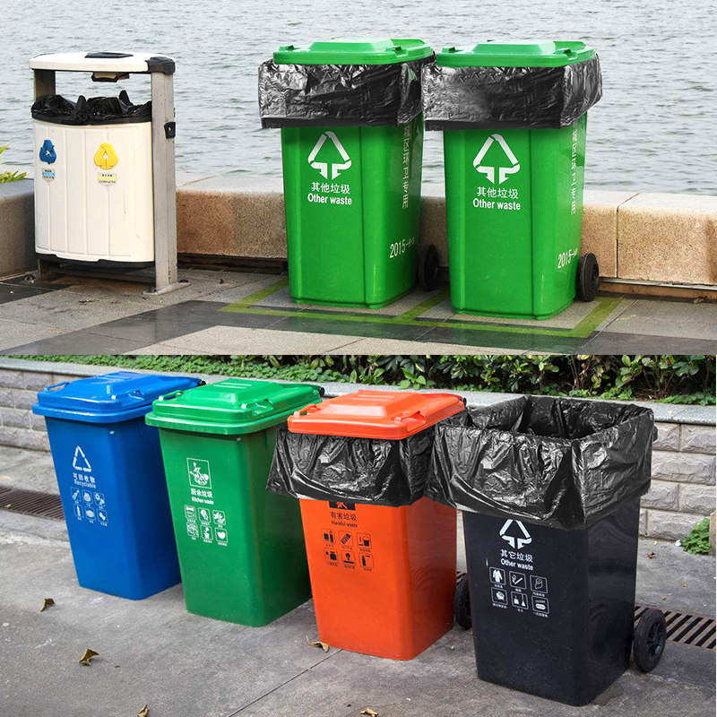 Большой черный пластиковый мусорный мешок, увеличенная толщина, большой размер