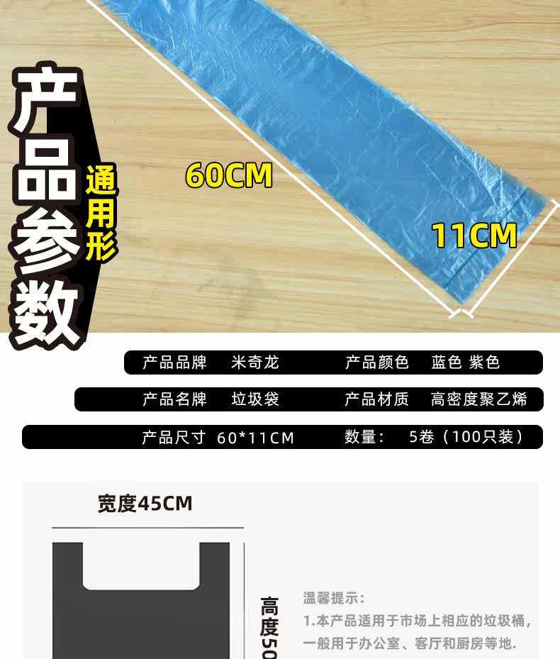 米奇龙 Большой мусорный мешок, черная пластиковая портативная одноразовая майка топ, увеличенная толщина