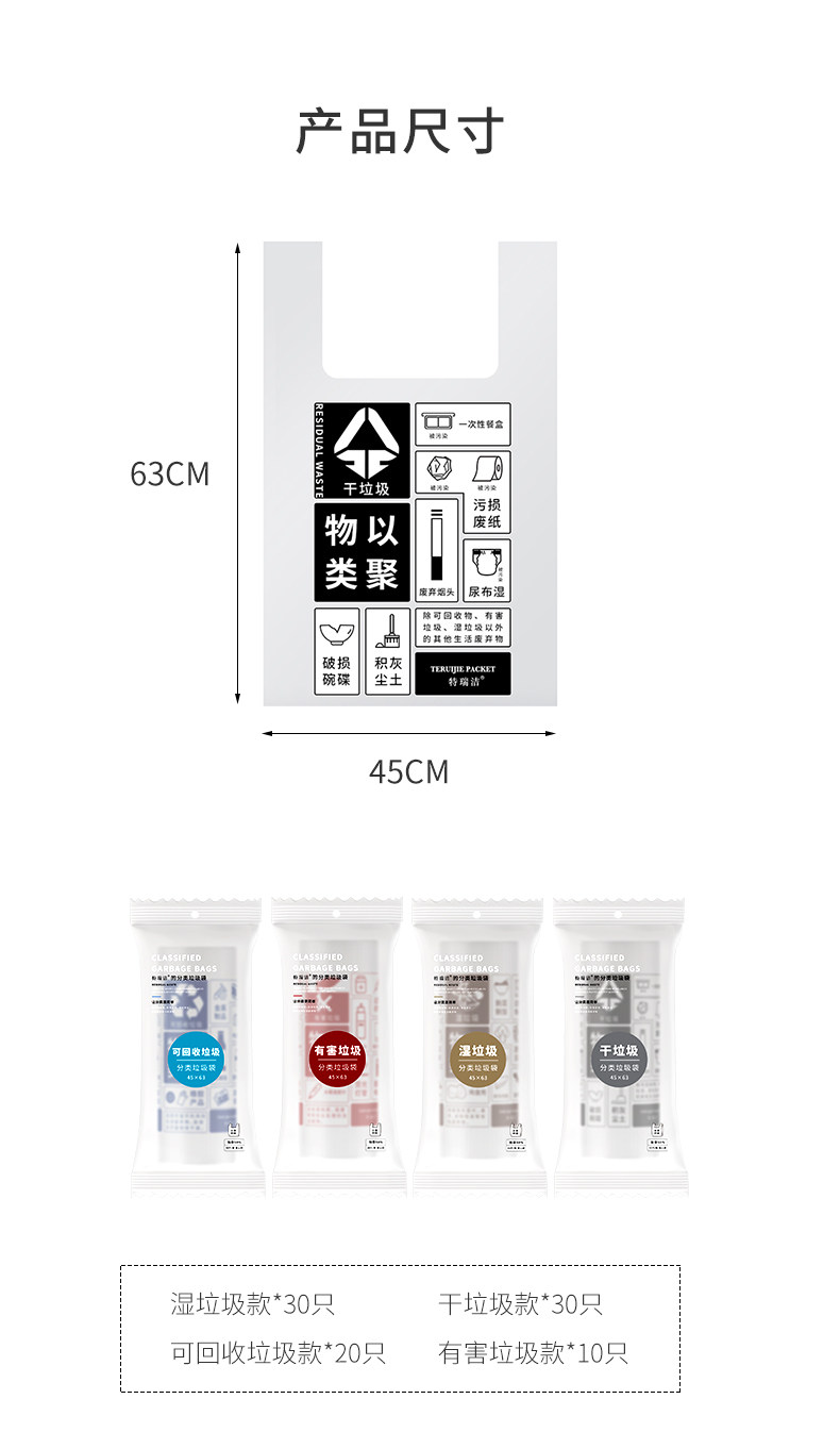 特瑞洁 Мусорное ведро, портативный экологичный одноразовый большой пластиковый мусорный мешок, увеличенная толщина