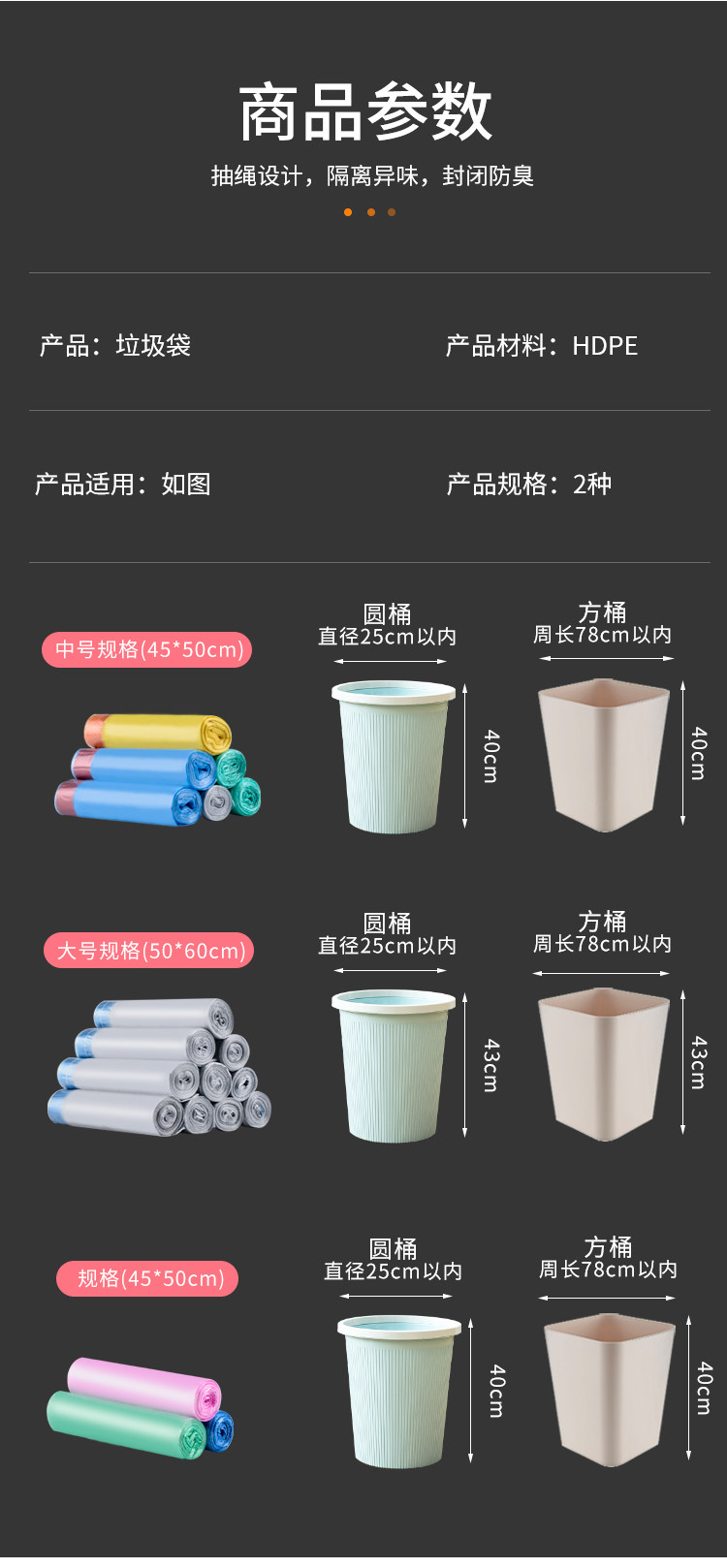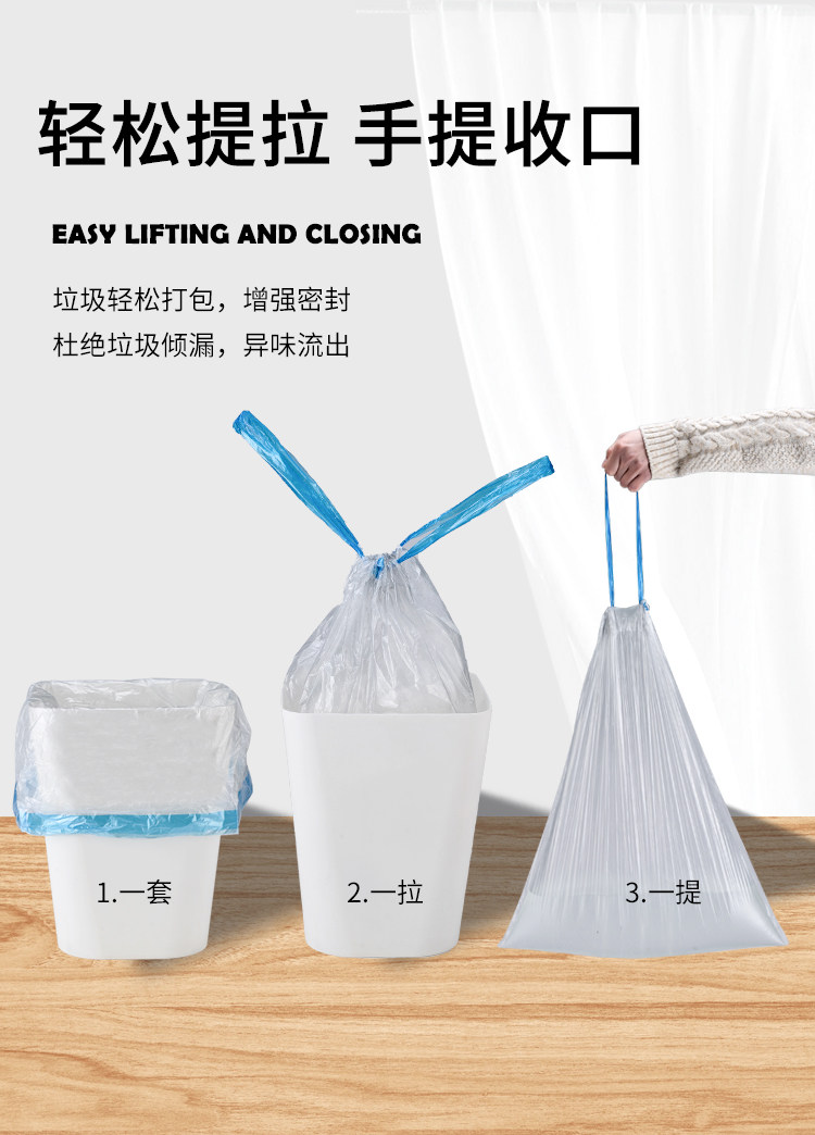 Портативный очень большой пластиковый мусорный мешок, увеличенная толщина, на шнурках