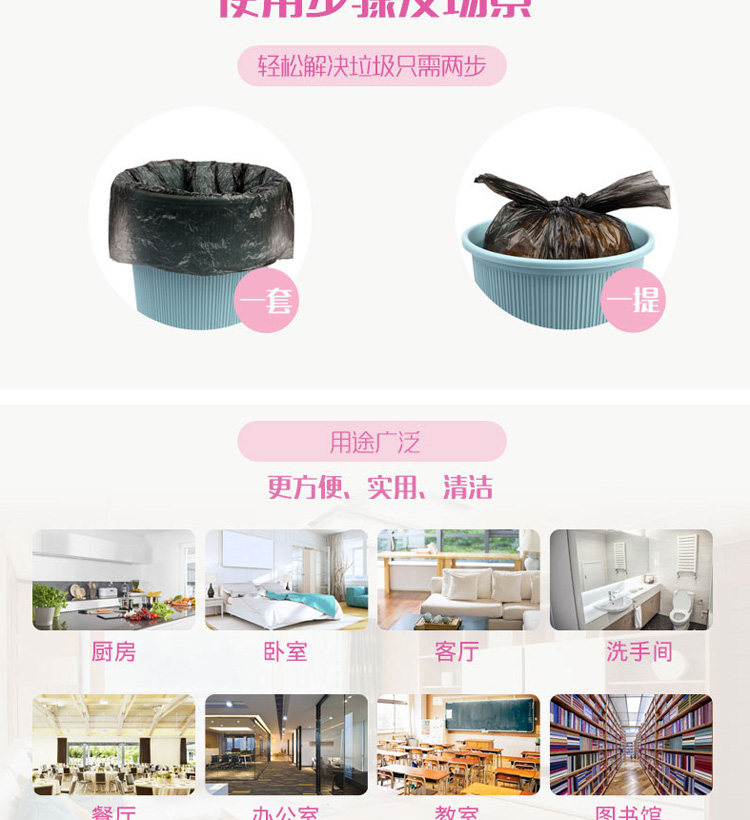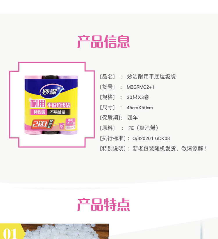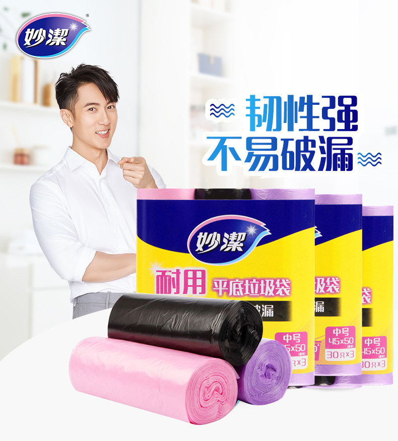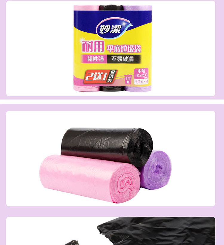妙洁 Пластиковый одноразовый черный мусорный мешок для домашнего использования, увеличенная толщина