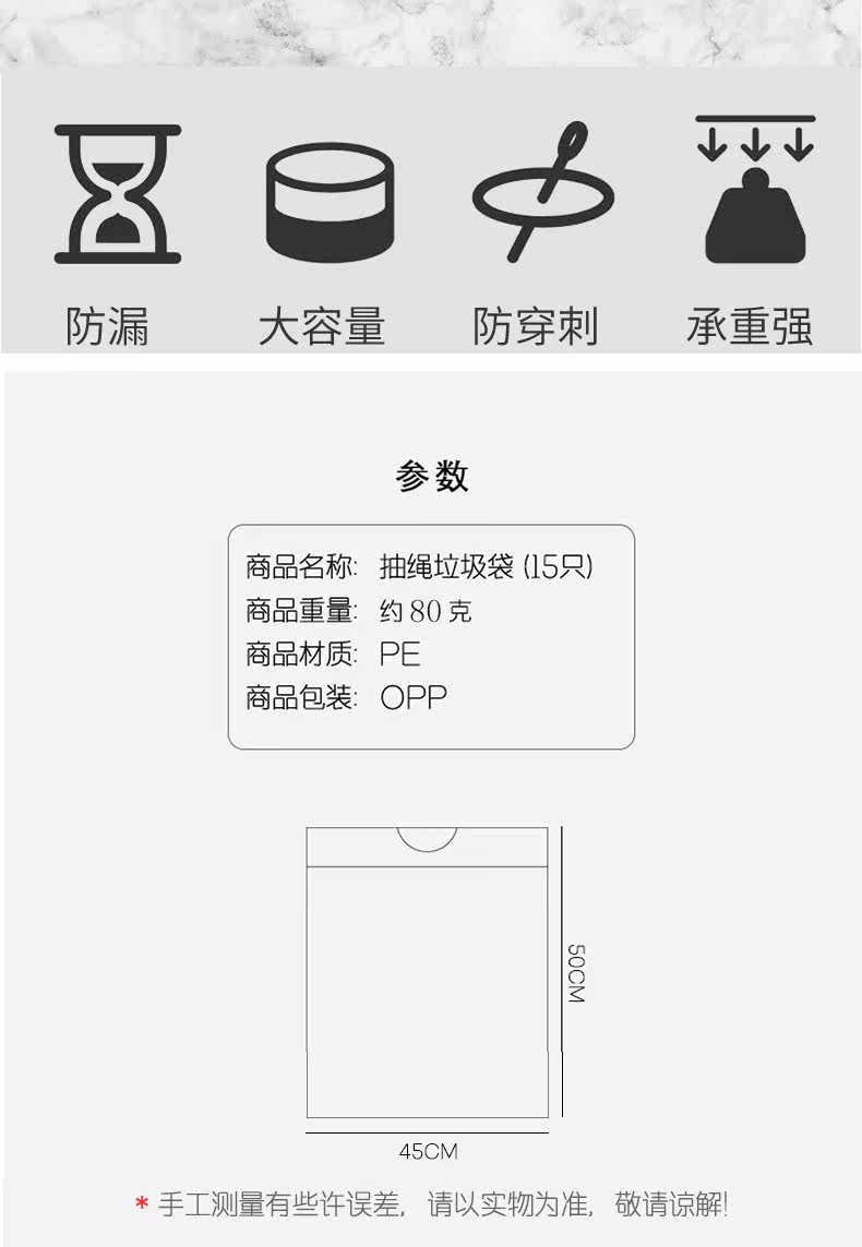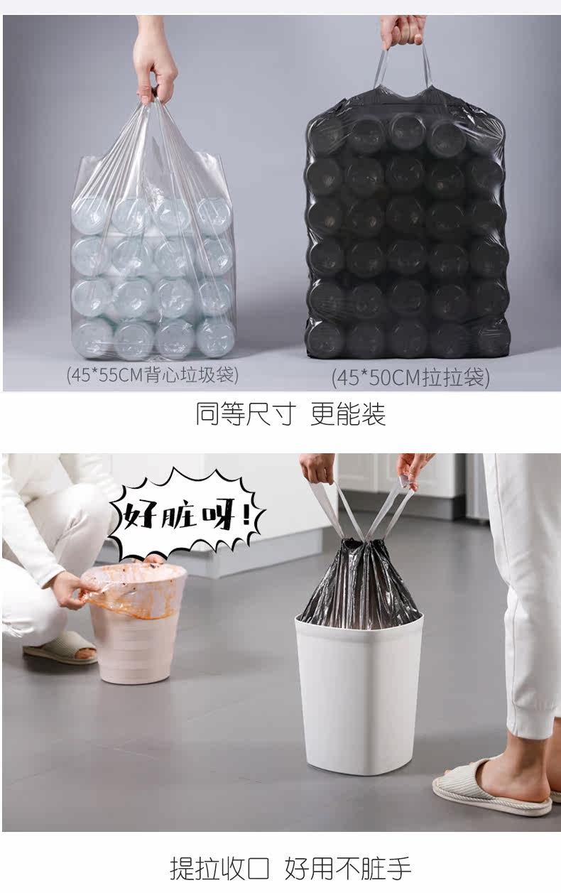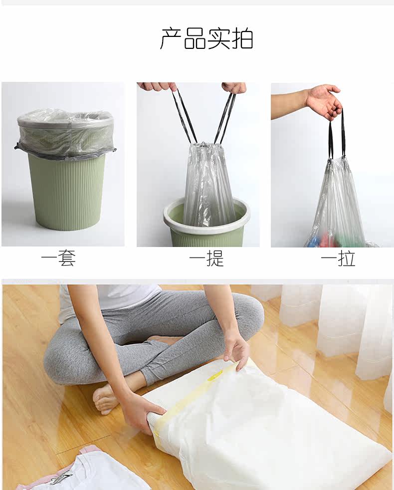 Портативный одноразовый автоматический большой мусорный мешок для домашнего использования, на шнурках, увеличенная толщина