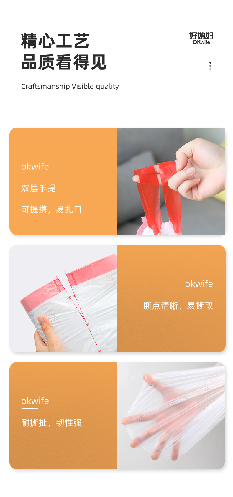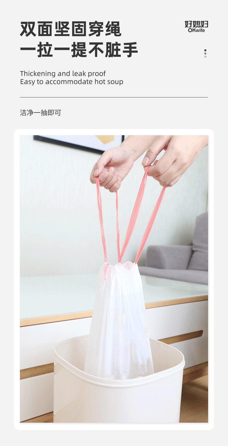 好媳妇 Большой мусорный мешок для домашнего использования, экологичная одноразовая портативная пластиковая майка топ, увеличенная толщина