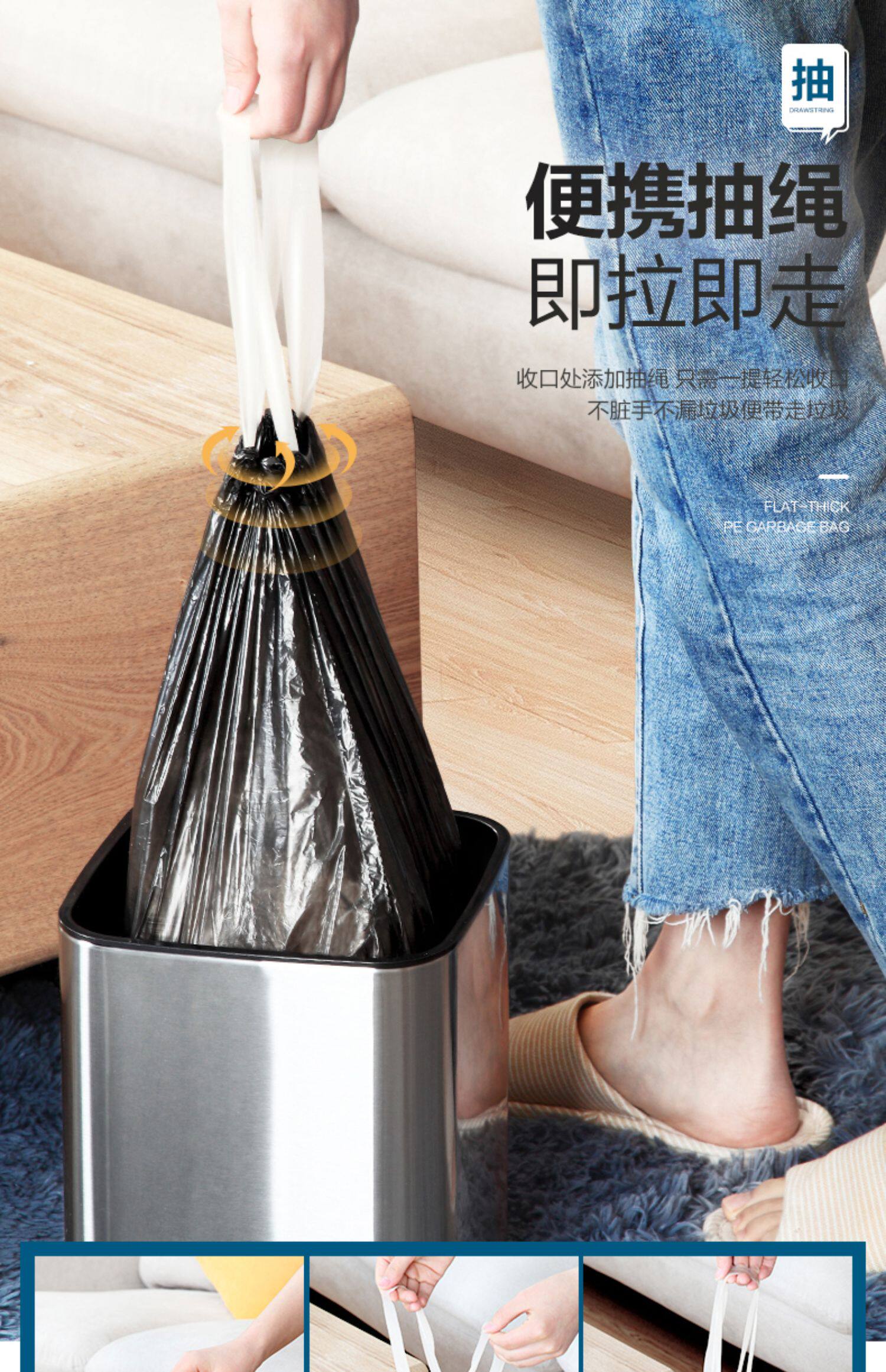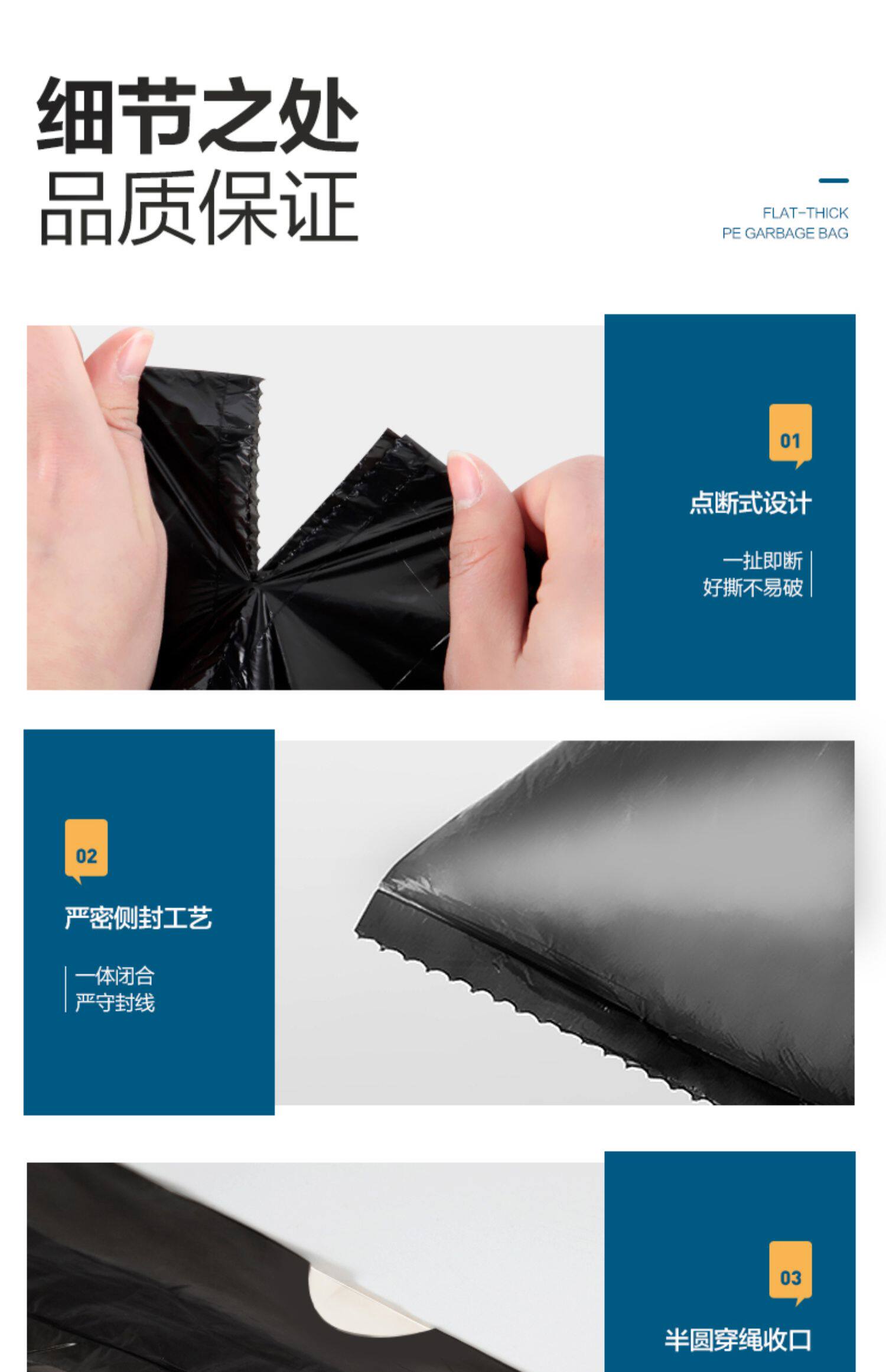 Одноразовый черный большой пластиковый мусорный мешок, увеличенная толщина