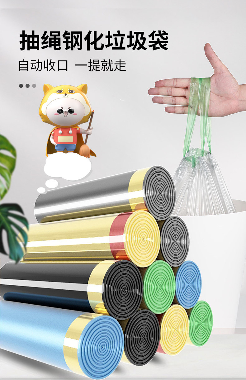 Портативный мусорный мешок для домашнего использования, пластиковое мусорное ведро, одноразовая ручка, увеличенная толщина, на шнурках