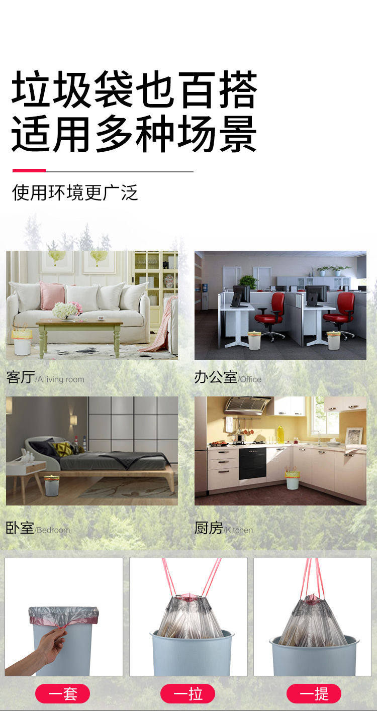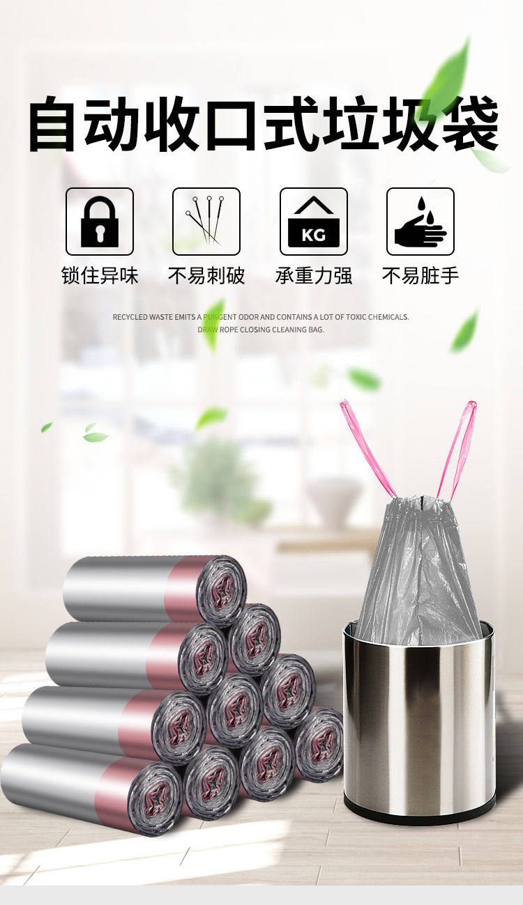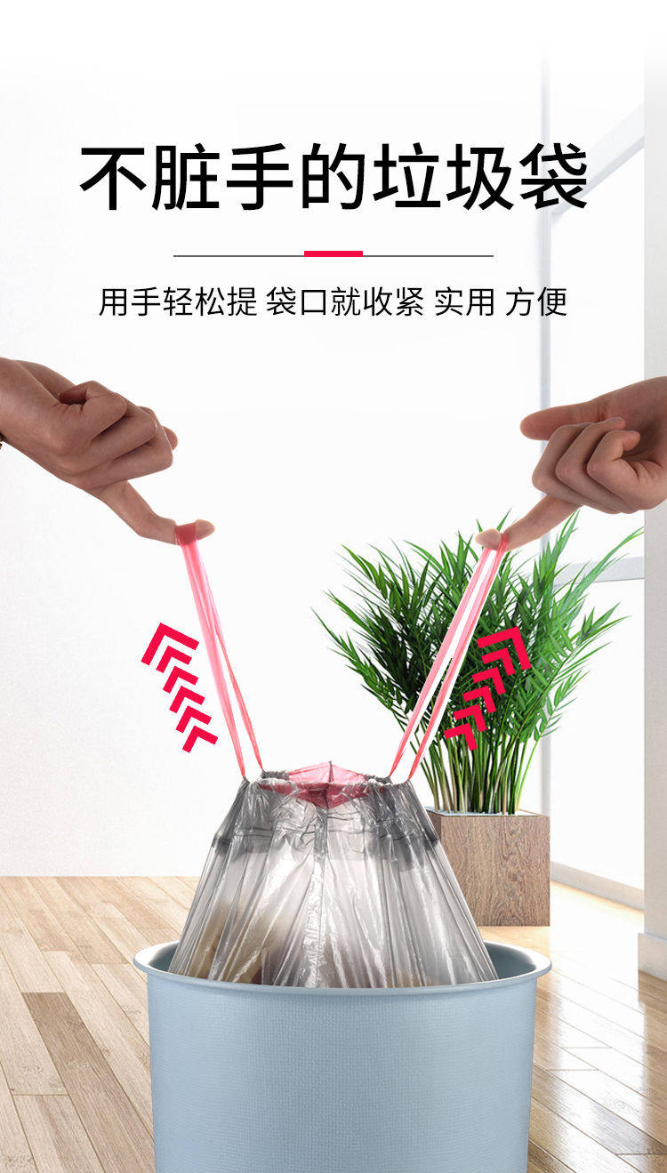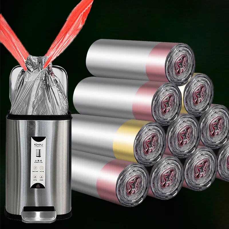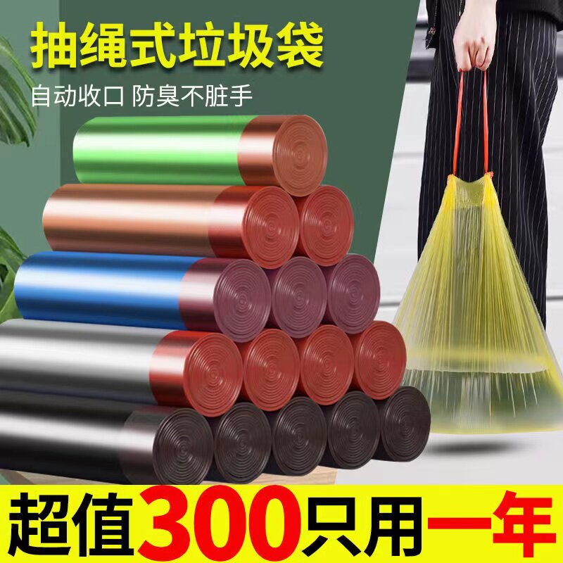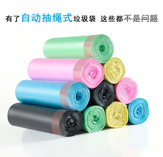 Черный большой пластиковый автоматический мусорный мешок, увеличенная толщина, на шнурках