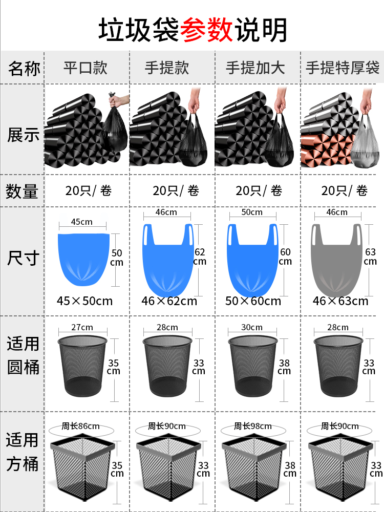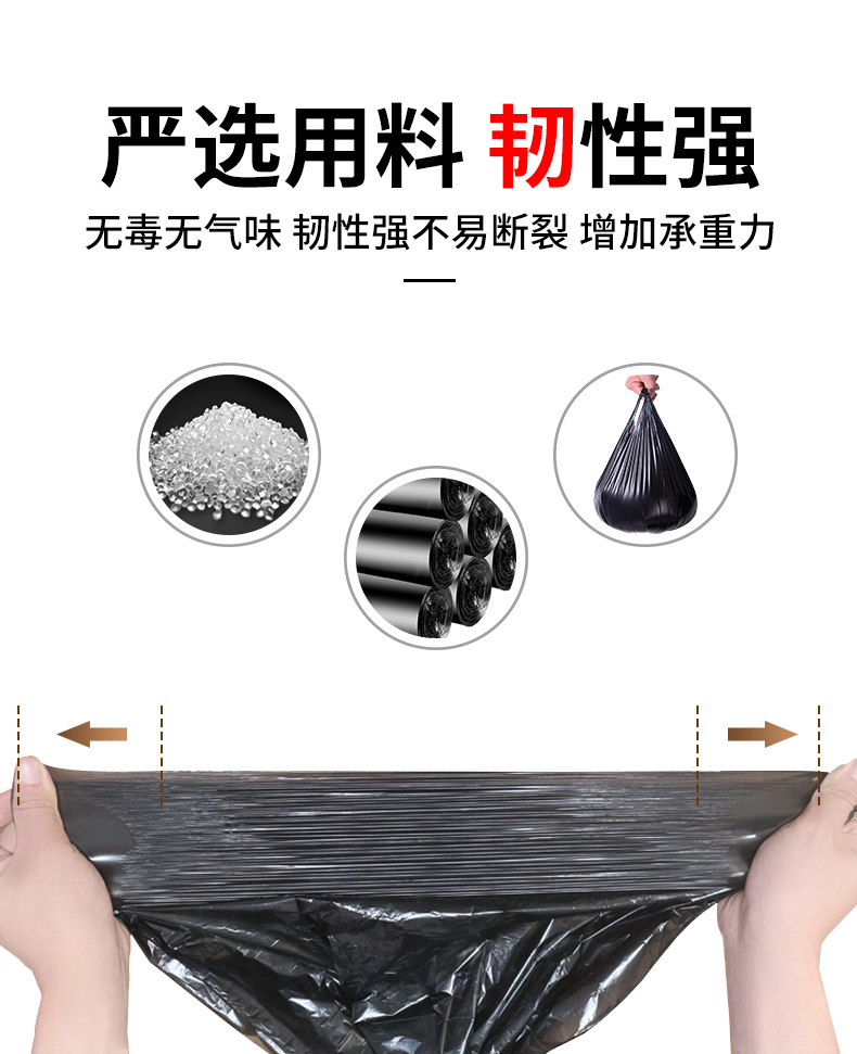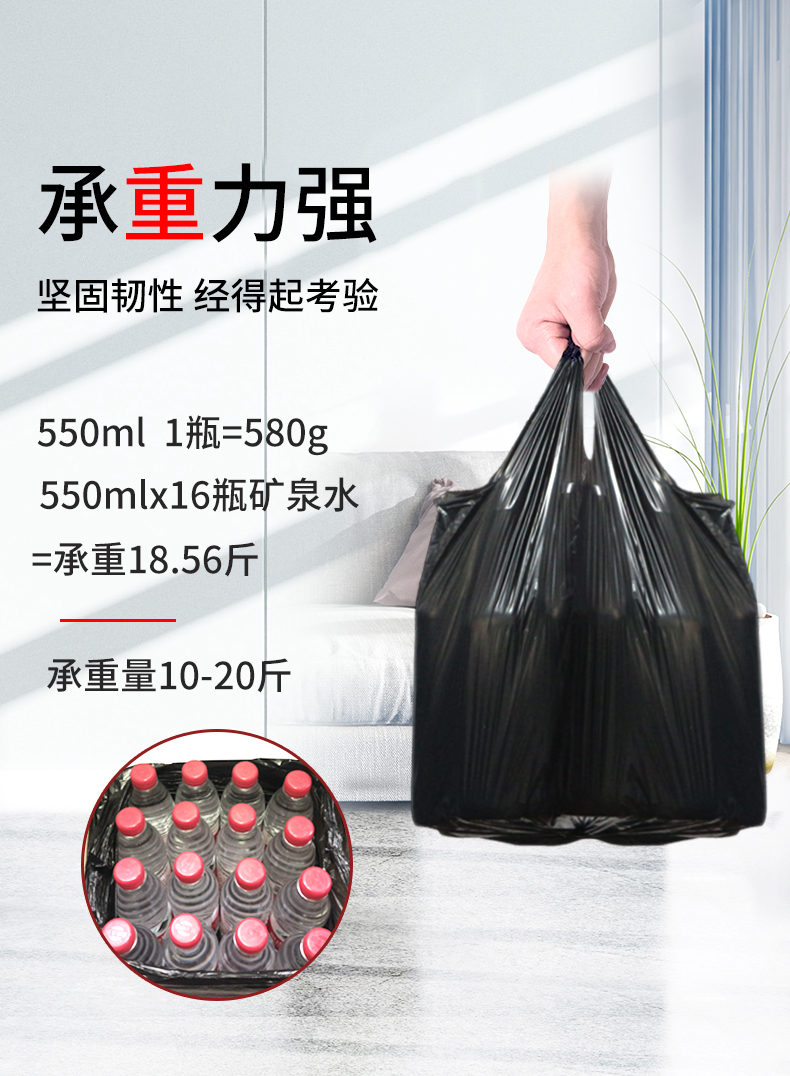 Портативный мусорный мешок для домашнего использования, большой черный пластиковый жилет, увеличенная толщина