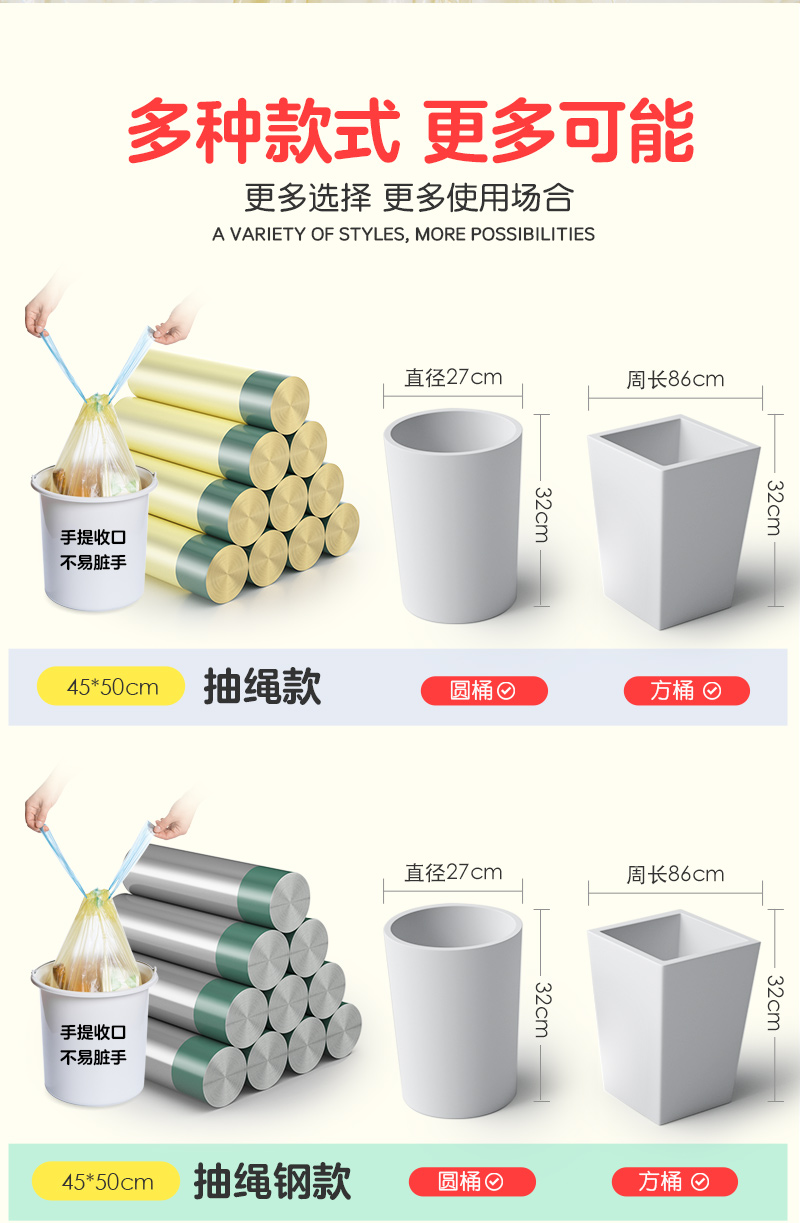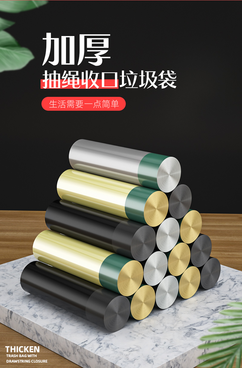 Портативный мусорный мешок для домашнего использования, большая черная пластиковая майка топ, на шнурках, увеличенная толщина