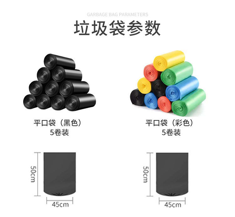 Черный большой одноразовый пластиковый мусорный мешок для домашнего использования, увеличенная толщина