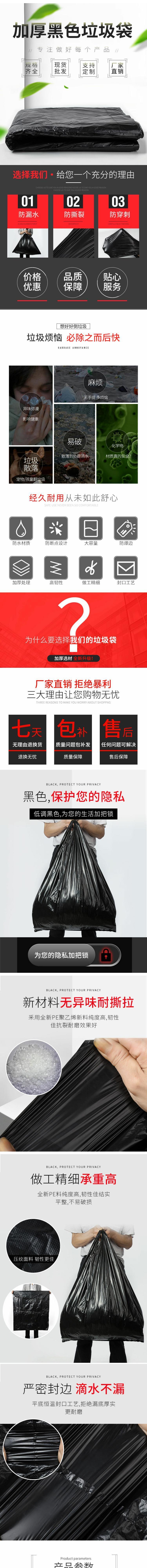 Черный очень большой пластиковый мусорный мешок для домашнего использования для коммерческого использования, увеличенная толщина