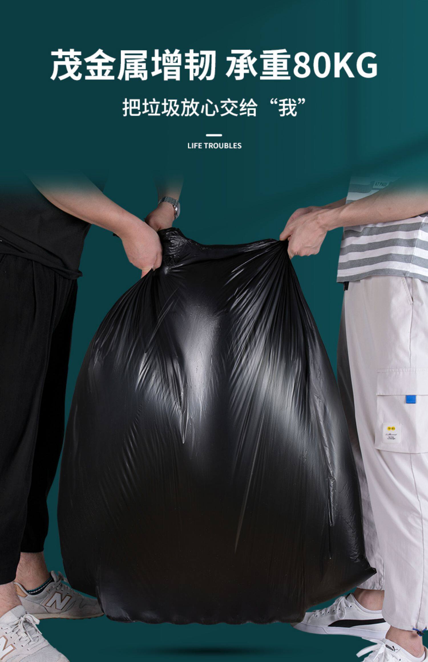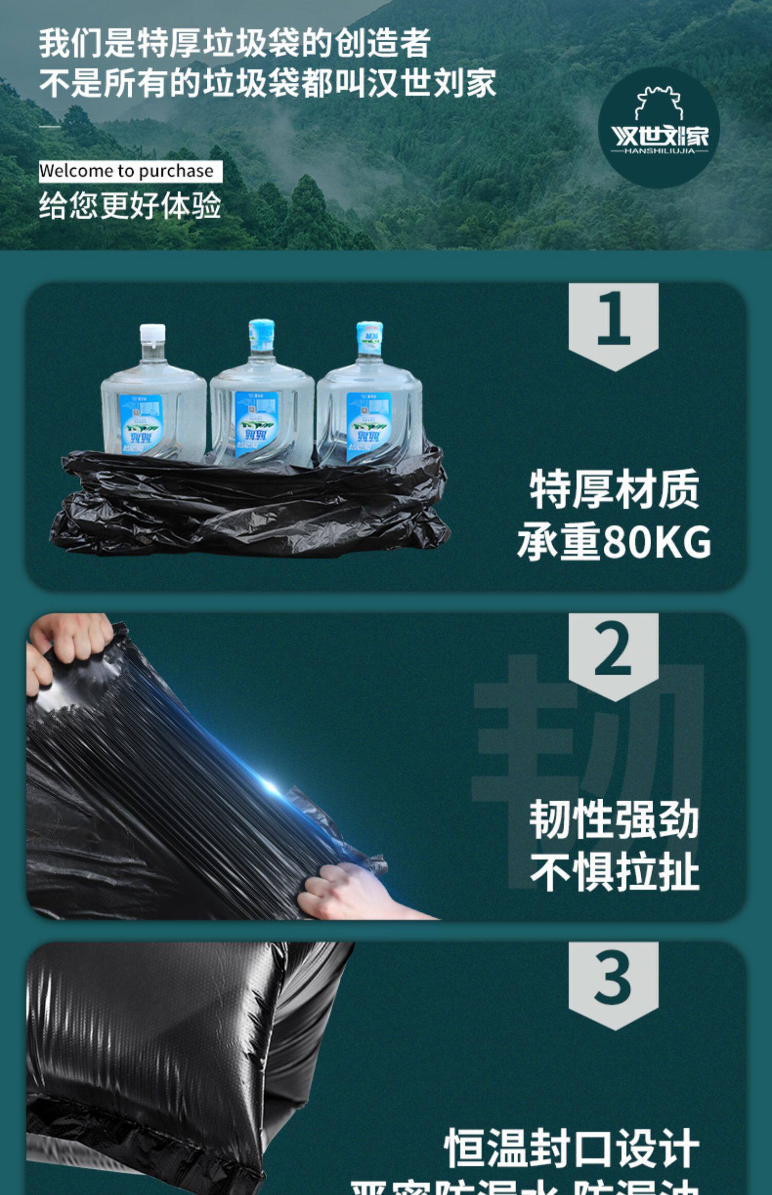 汉世刘家 Черный очень большой пластиковый мусорный мешок для коммерческого использования, увеличенная толщина